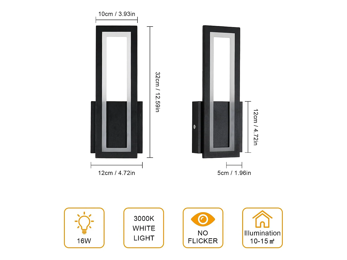 Applique murale LED moderne en aluminium, 21 W, 2362 lm, éclairage intérieur noir, lumière blanc chaud 3000 K, carrée, pour escalier, balcon