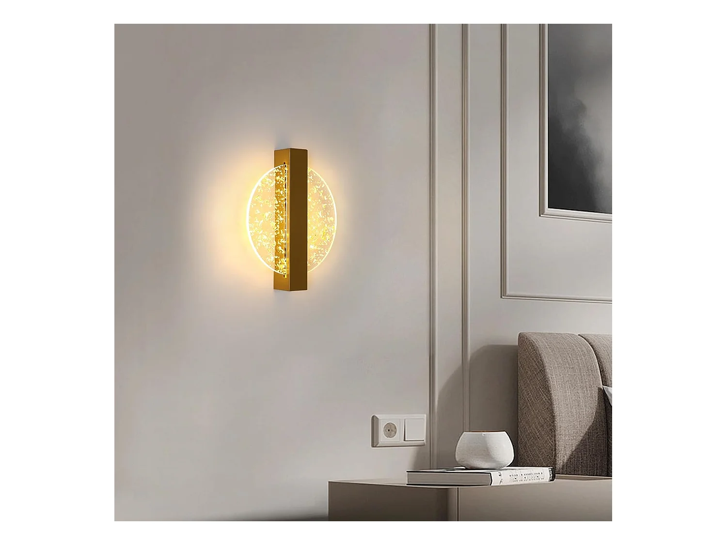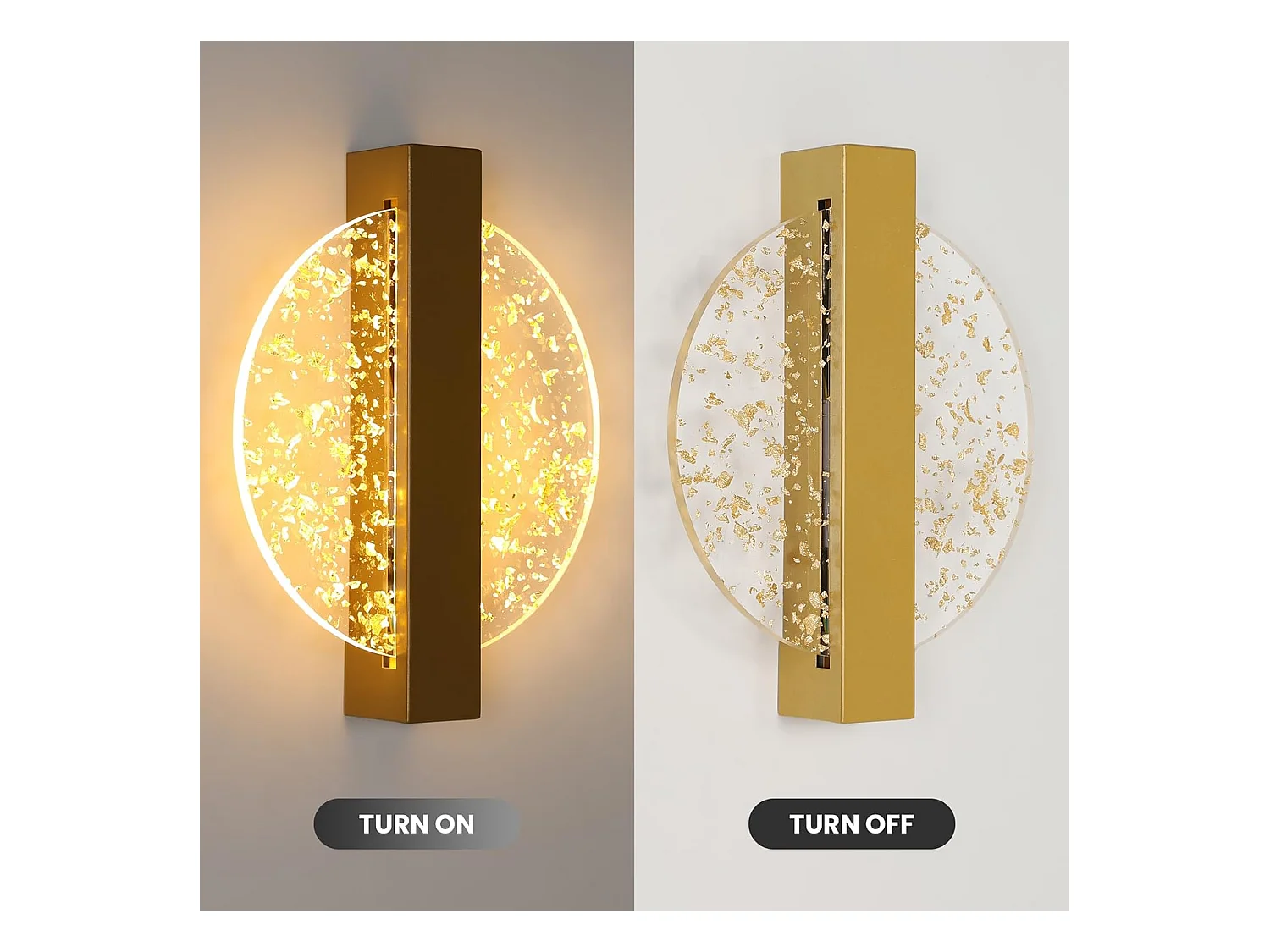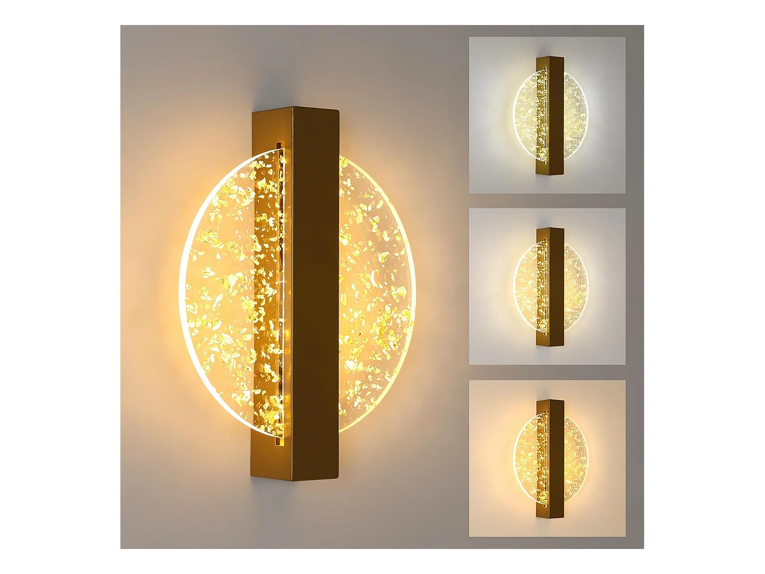 Applique Murale LED Moderne avec Feuille d'Or, Or Rond,en Acrylique, Lampe Tricolore, pour Chambre Salon