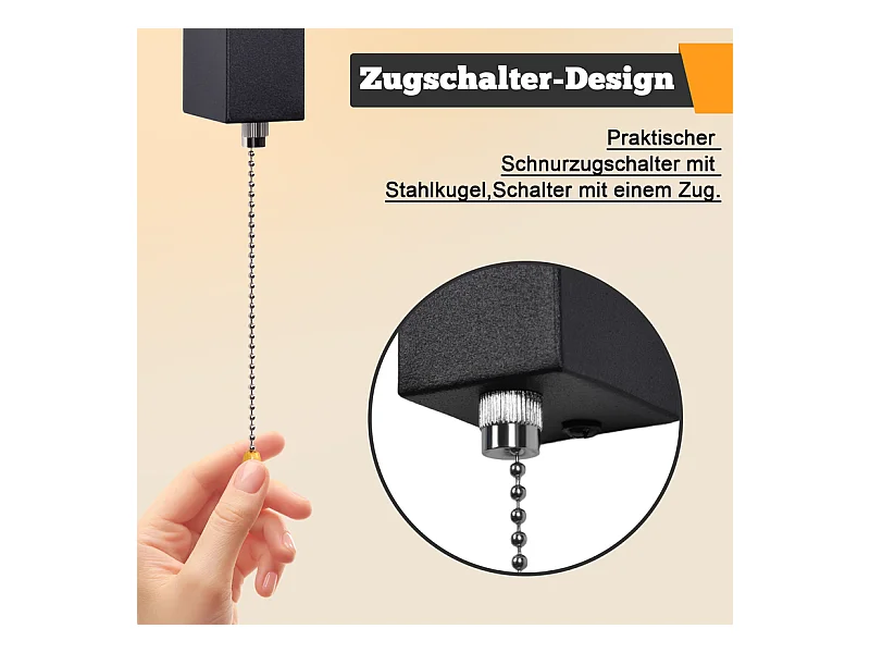 Applique murale LED Nettlife avec interrupteur - Lampe de couloir d'intérieur noire avec interrupteur à tirette, blanc chaud 3000 K, 6W