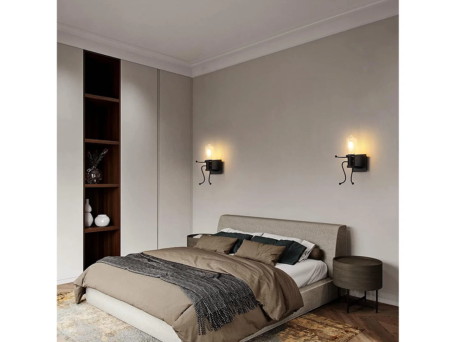 Applique Murale Vintage 2 Pack, Lampe Murale Intérieur Industrielle, Spot Mural Fer Rétro pour Chambre Couloir Bar, E27, IP20, Noir, Sans Ampoule