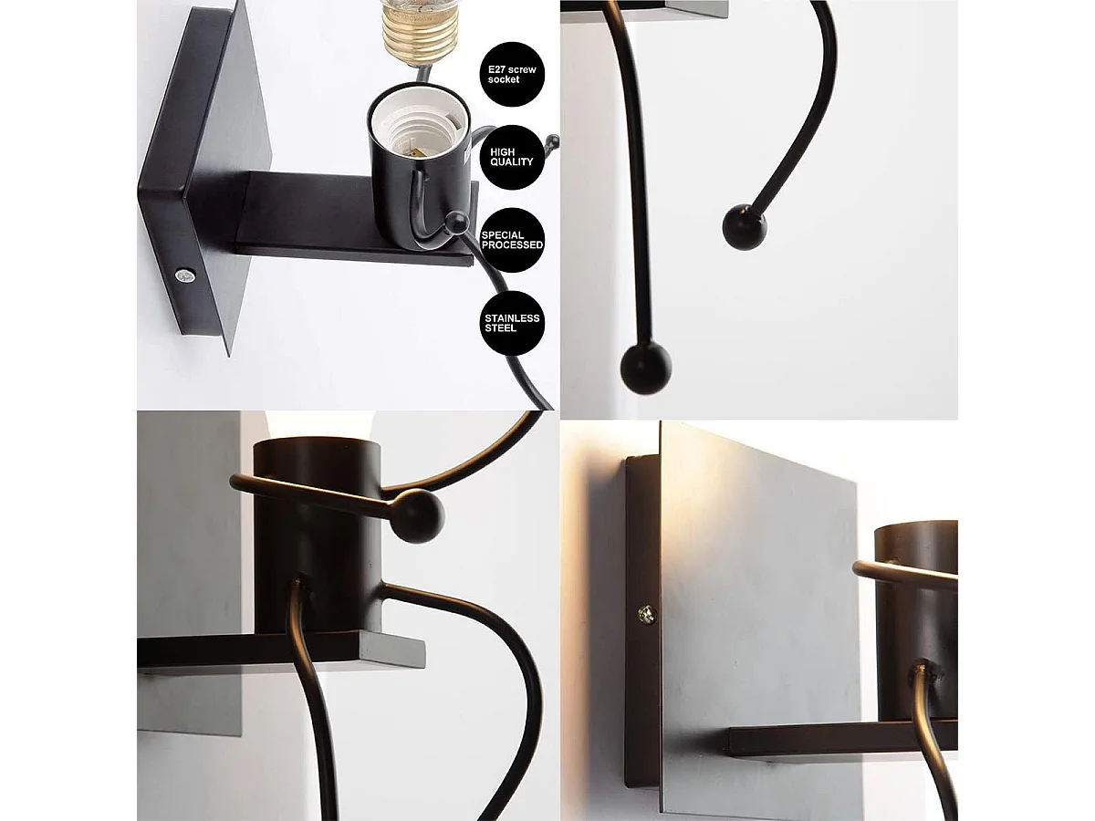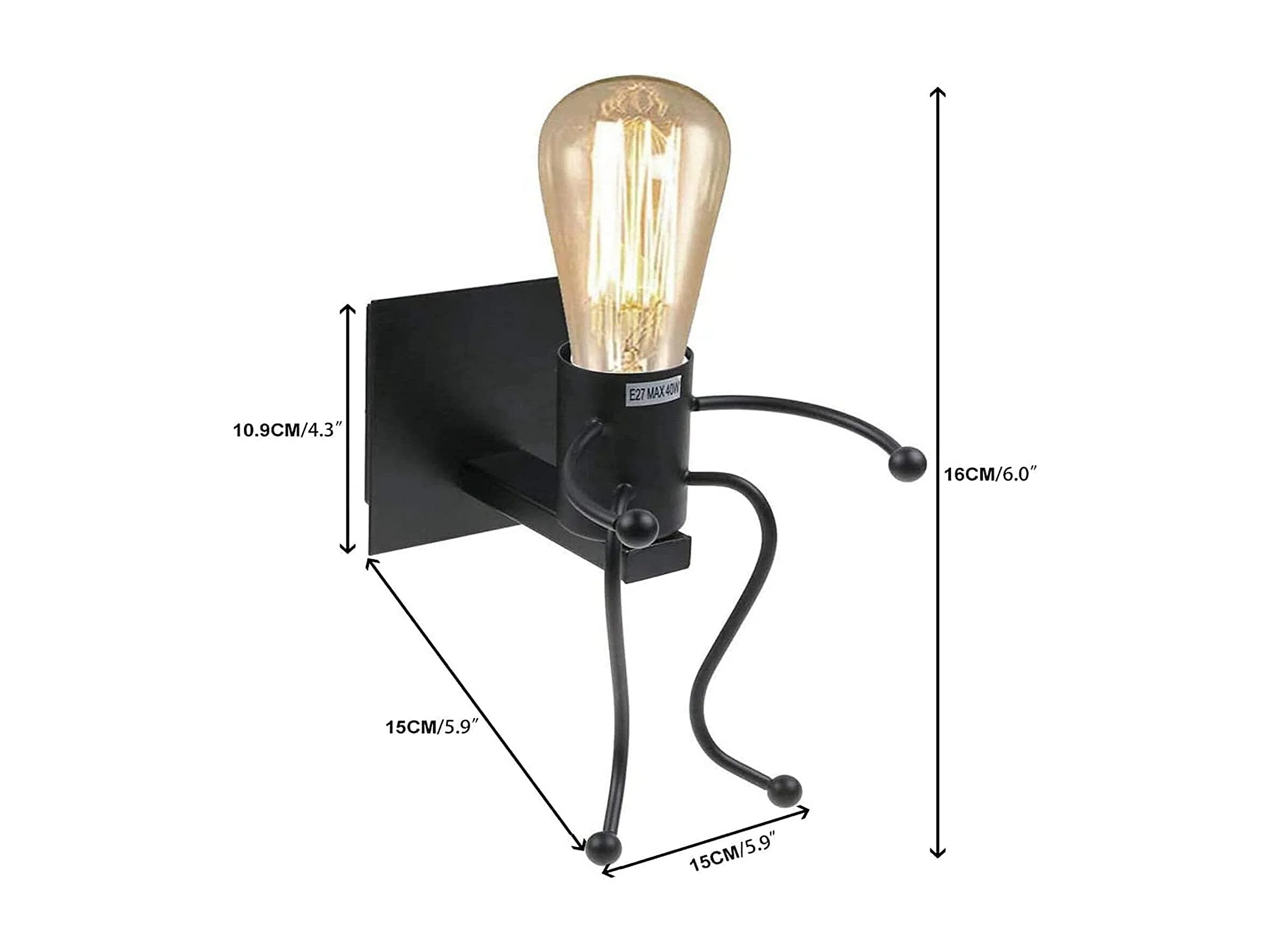 Humanoïde Créatif Applique Murale Interieur Lampe Murale Moderne Lampe de Mur Art Déco Max 60W E27 pour Chambre à Coucher, Chambre D'enfants,Escalier, Cuisine, Noir