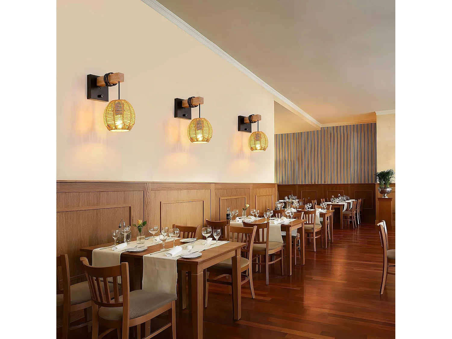 Applique Murale Rotin Vintage - Luminaire Intérieur avec Interrupteur en Bois/Métal pour Salon/Chambre/Couloir/Salle à Manger - E27 Sans Ampoule Included