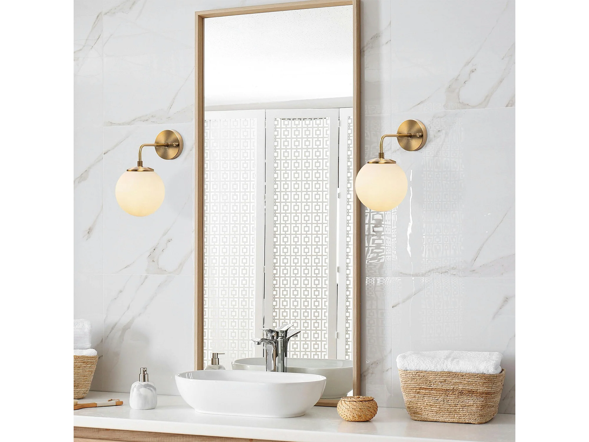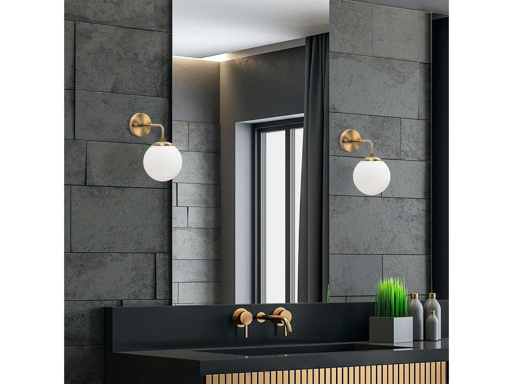 Applique murale moderne, globe blanc socle doré SIERRE