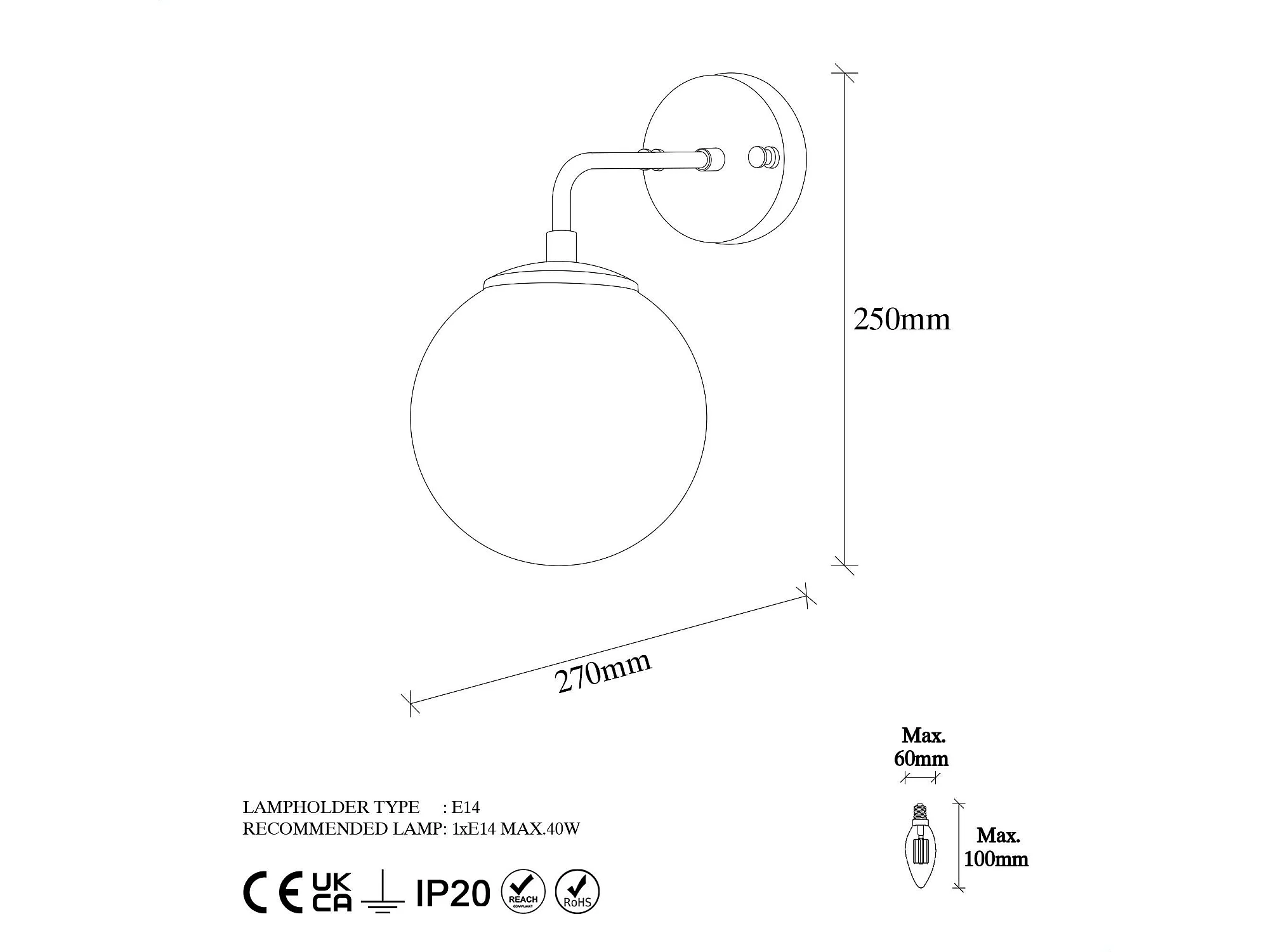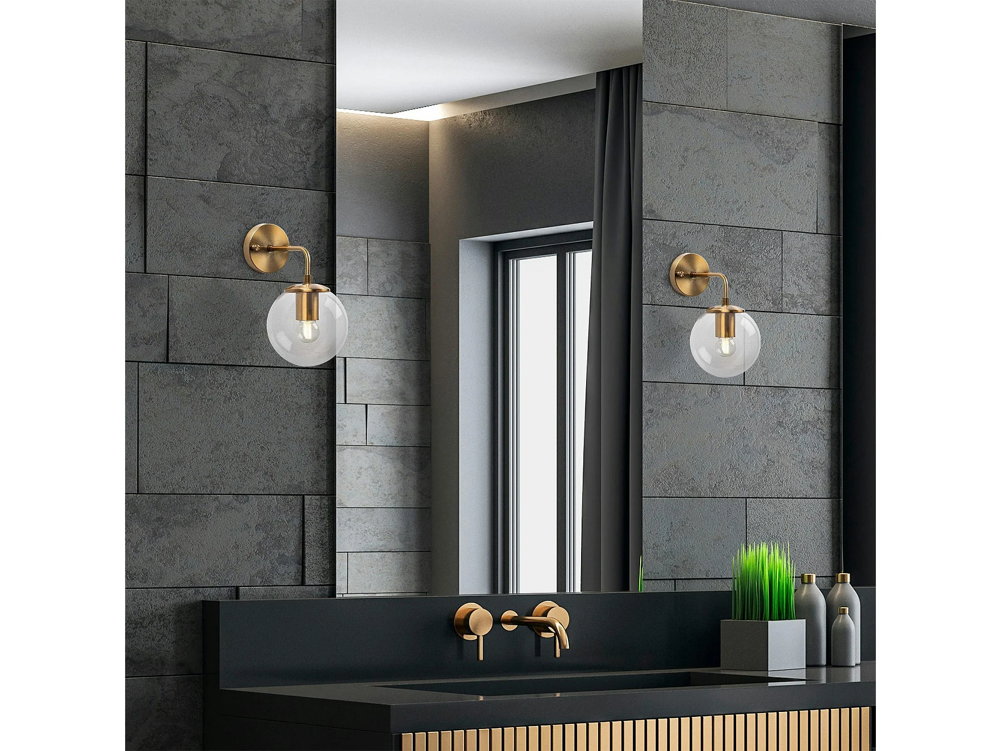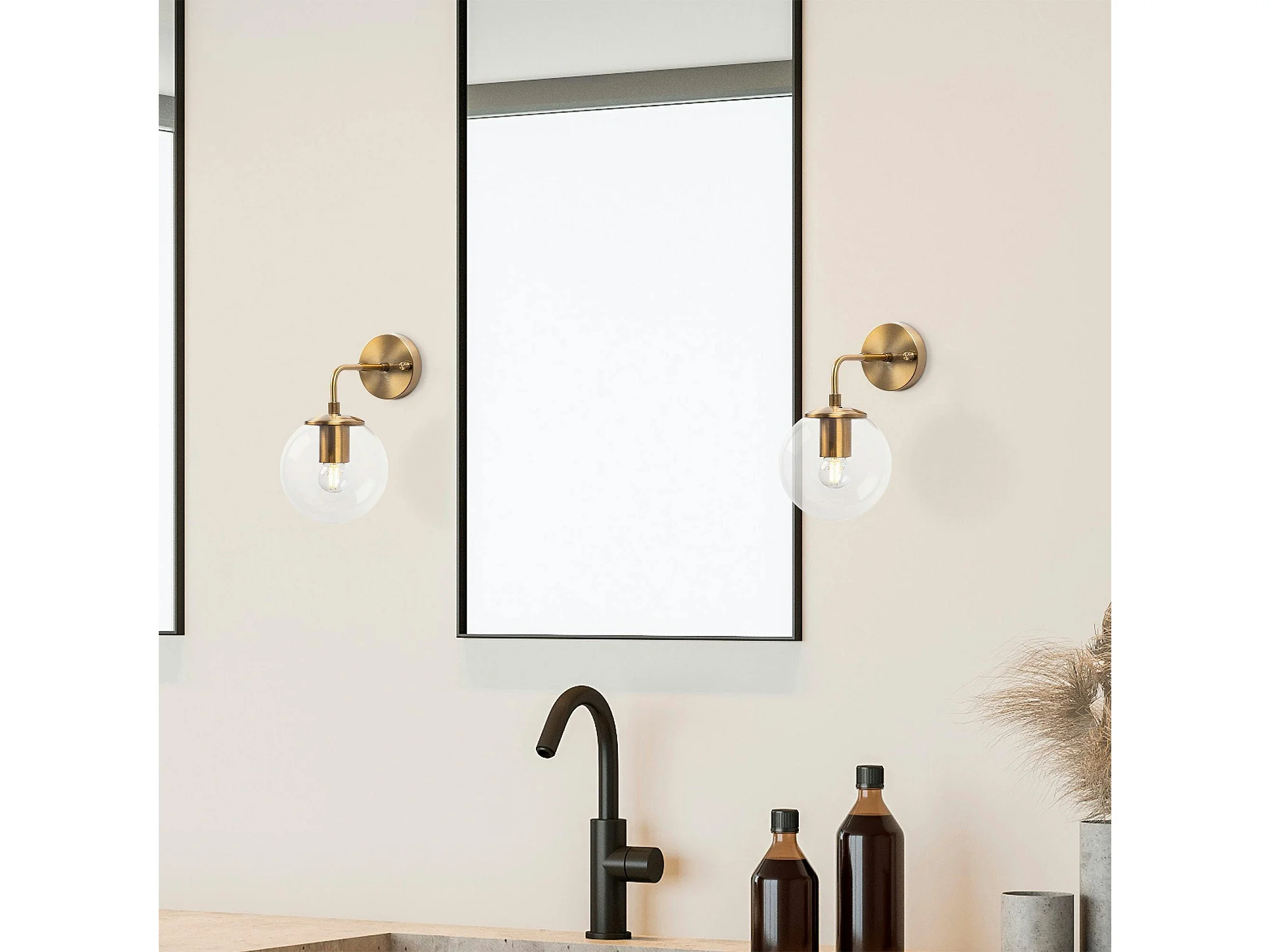 Applique murale moderne dorée, globe verre sur tige SIERRE