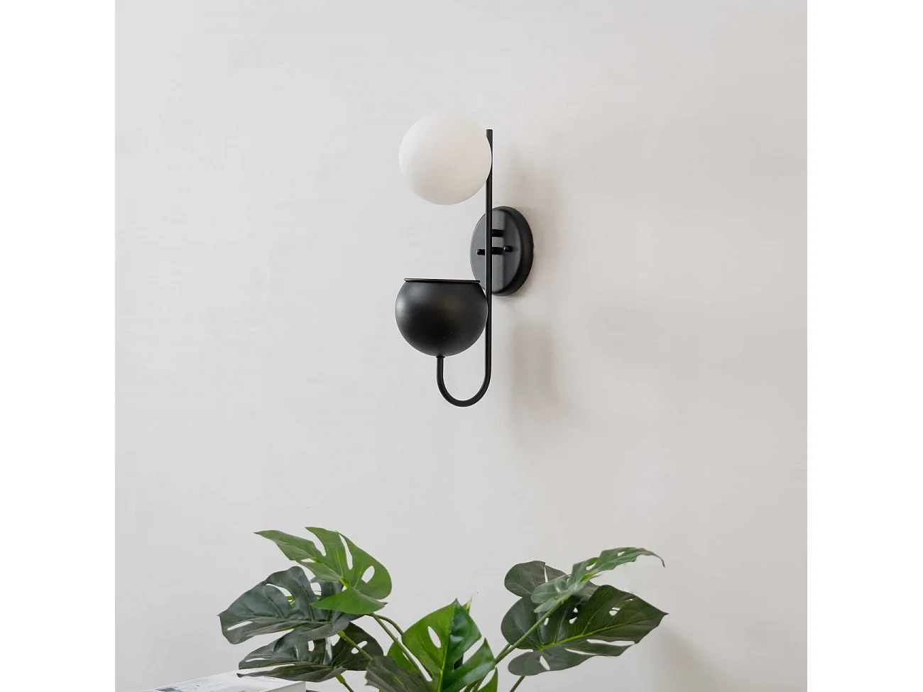 Applique noire et dorée double ovale et verre blanc - Mattina