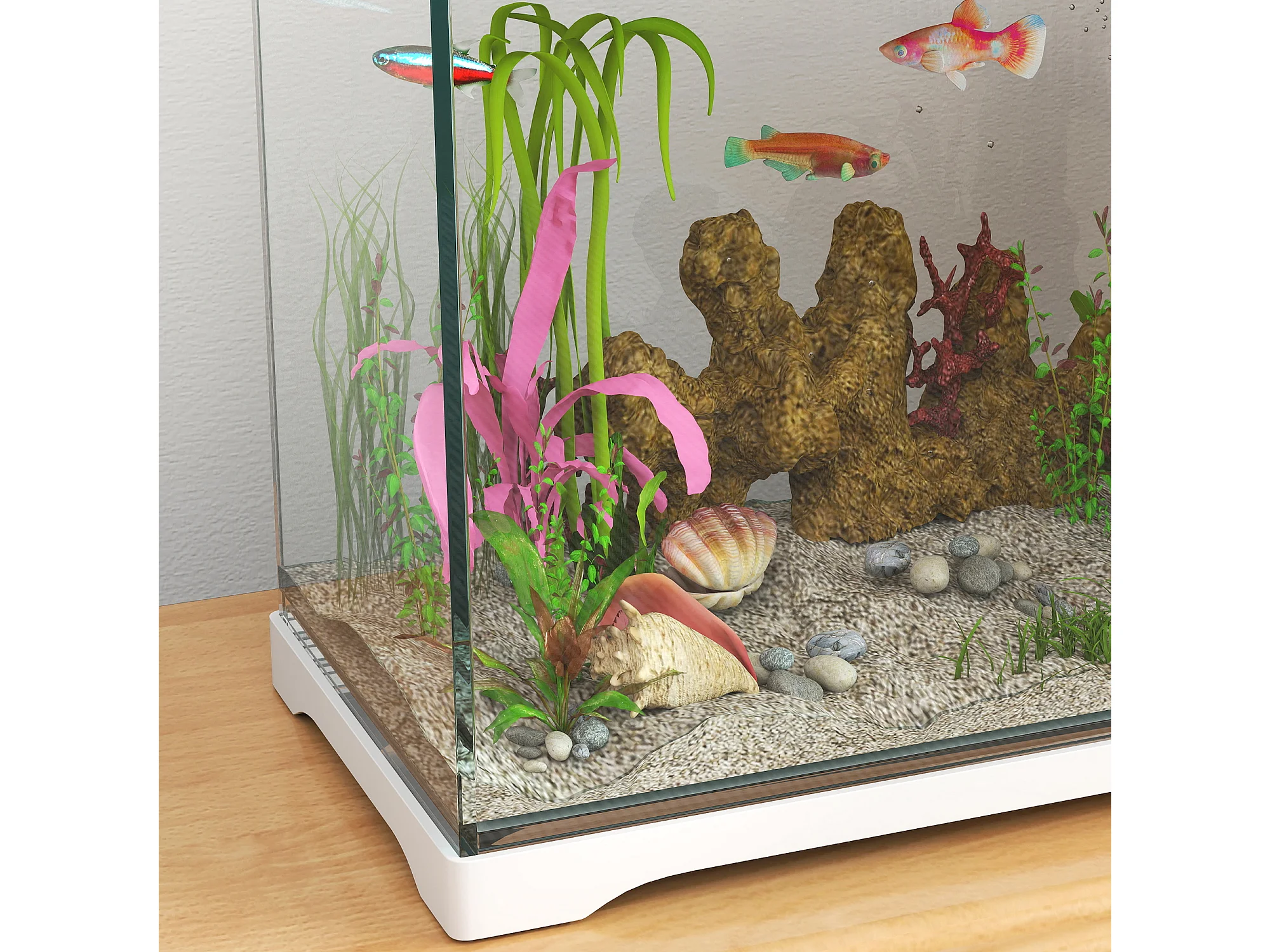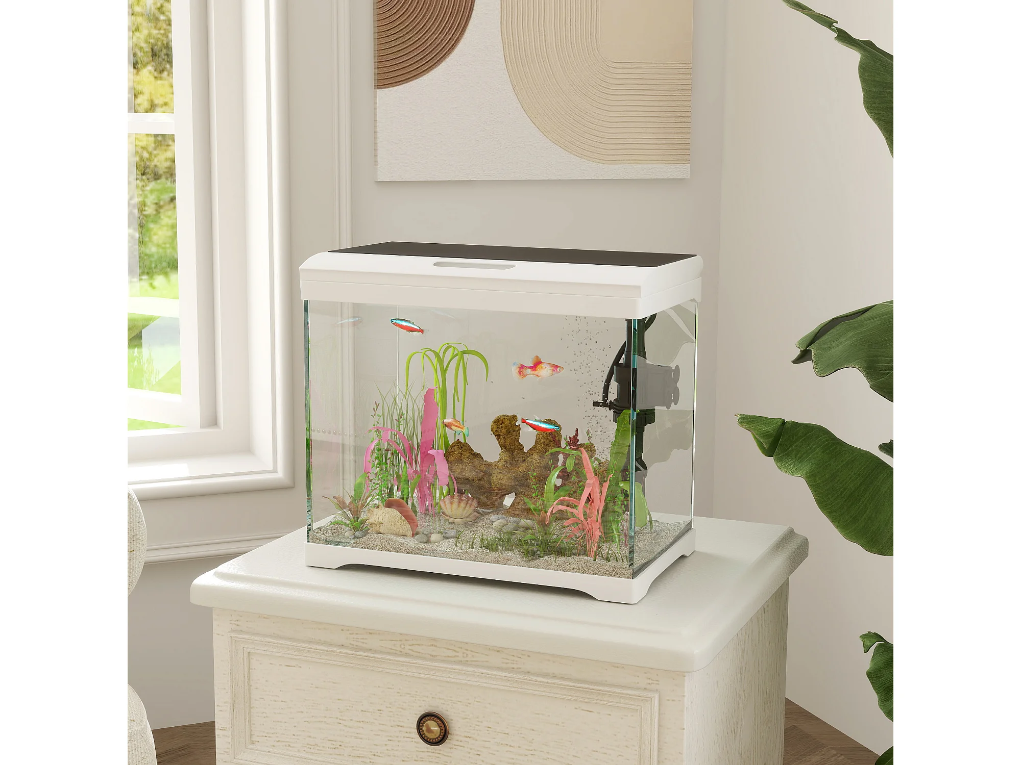 Aquarium tropical avec éclairage LED et système de filtration, verre, blanc (35x21x31cm)
