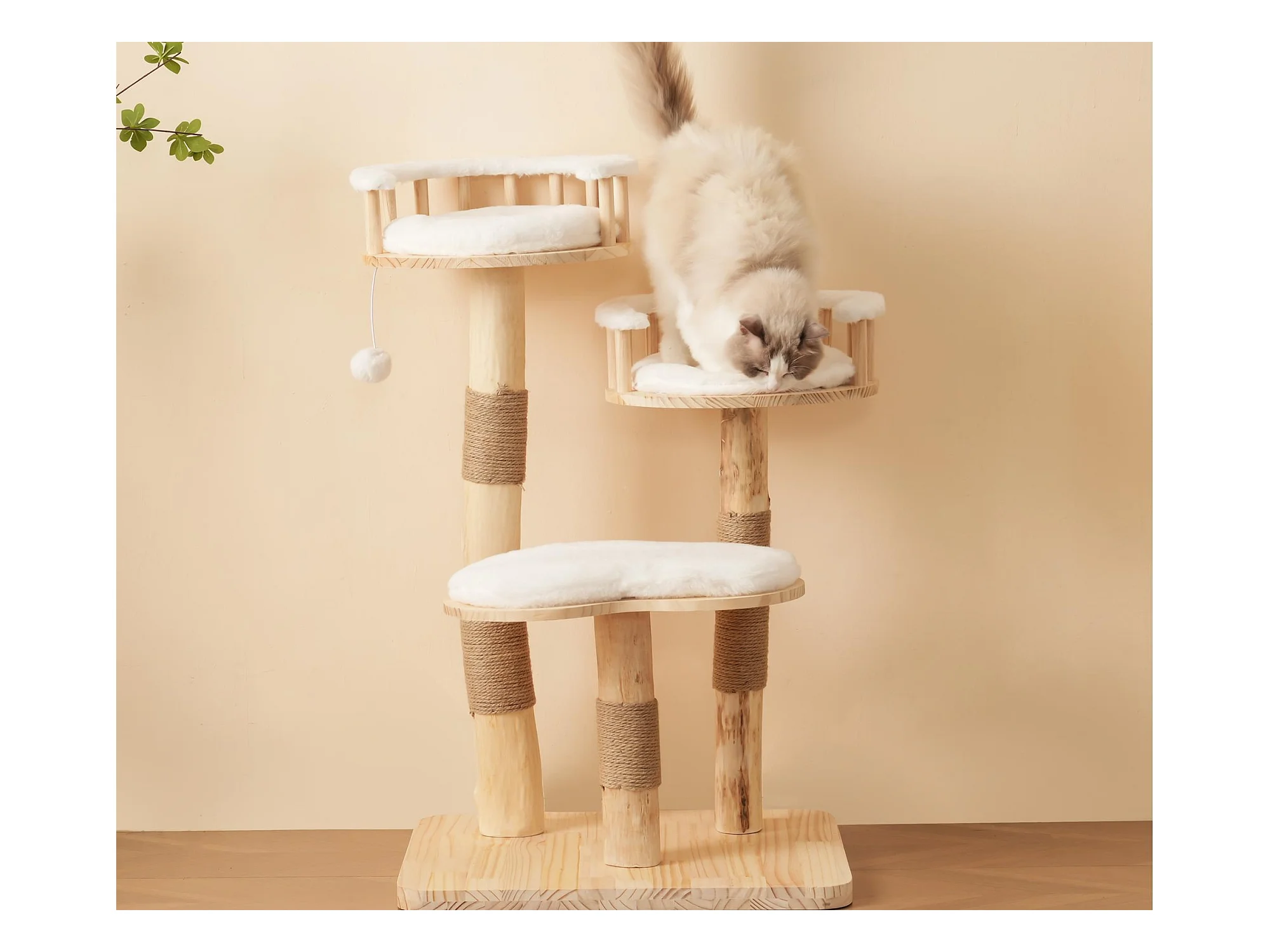 Arbre à chat en bois massif, d80cm×h185cm, blanc