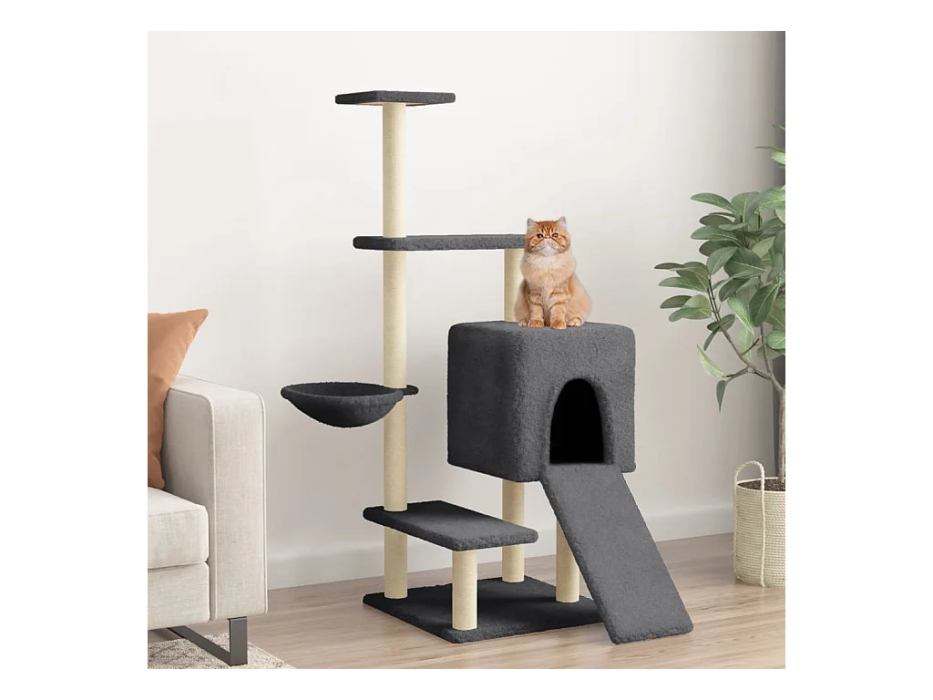 Arbre à chat avec griffoirs en sisal gris foncé 130,5 cm