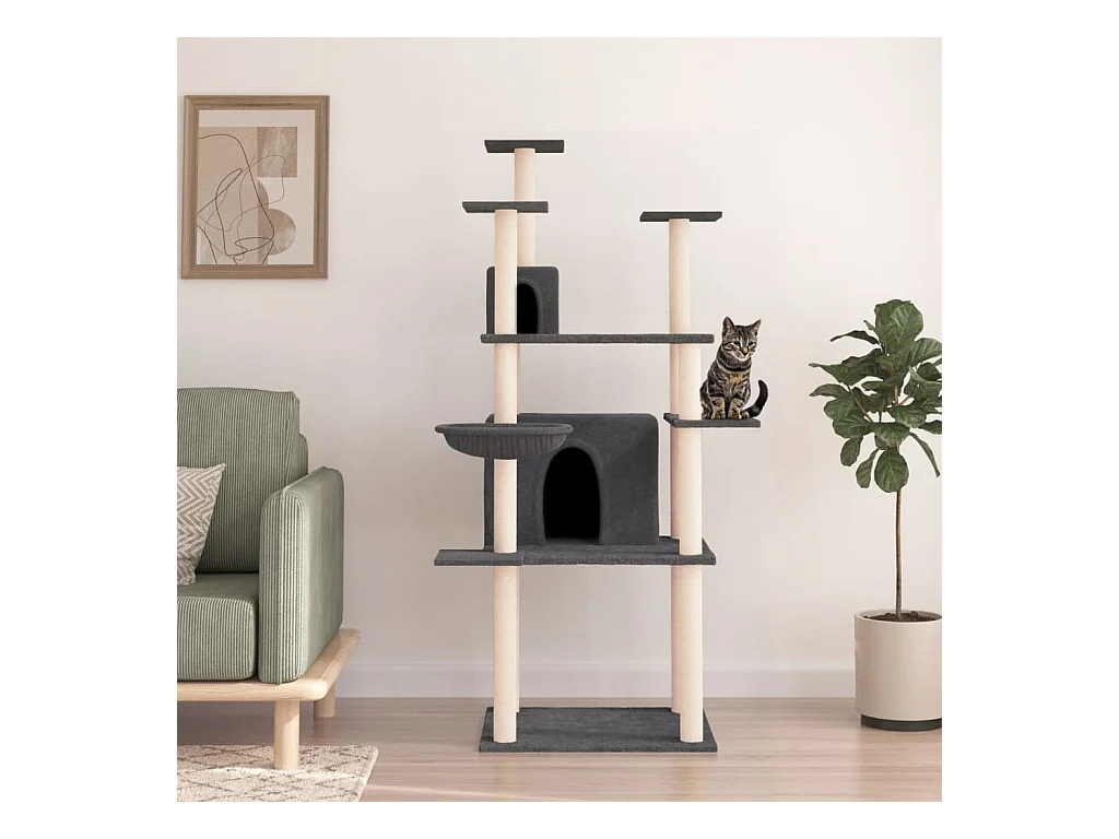 Arbre à chat avec griffoirs en sisal Gris foncé 166 cm OFR50260 BonneVie Meuble