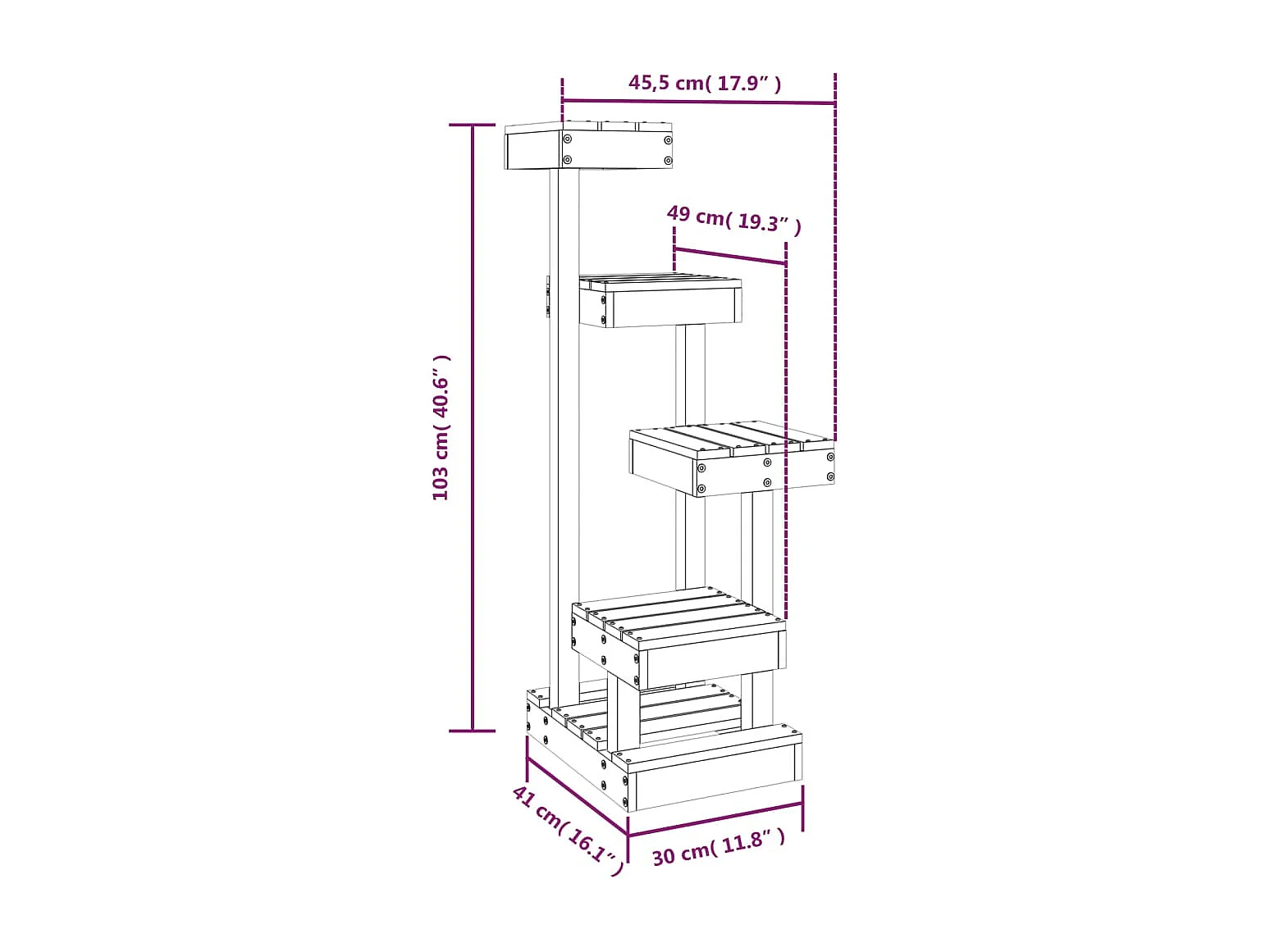 Arbre à chat en bois massif, d80cm×h185cm, blanc