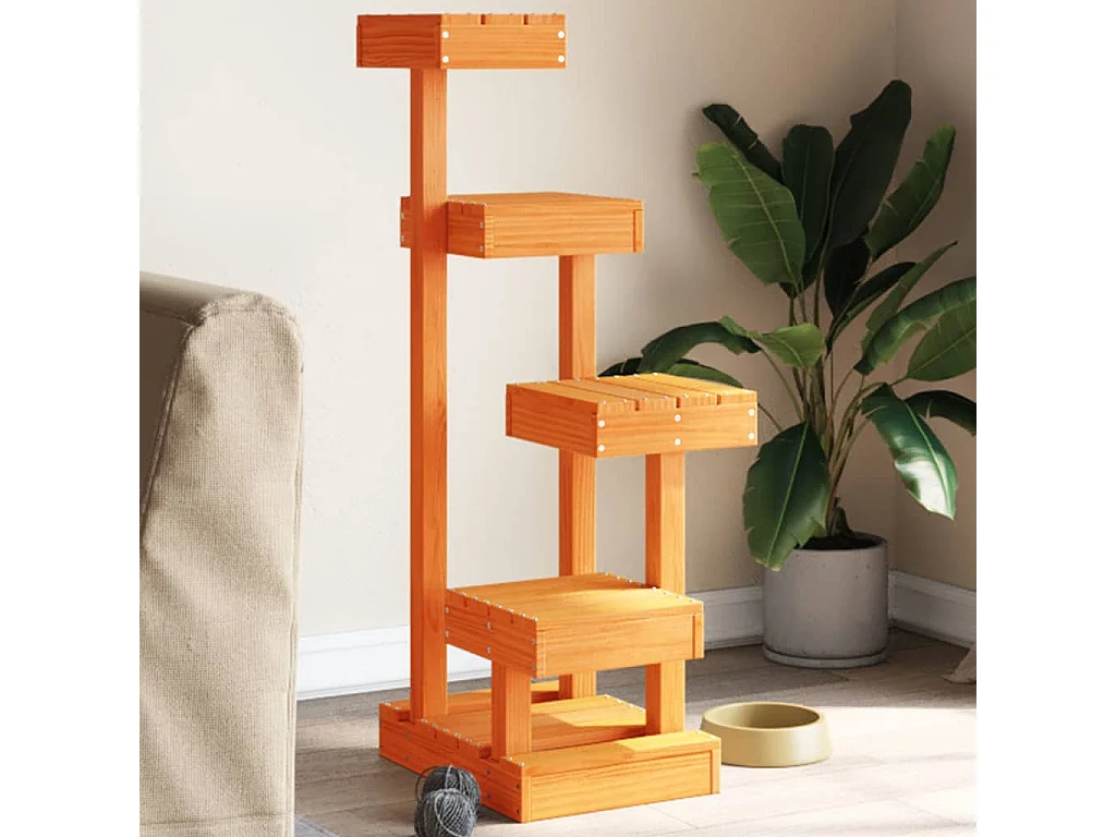 Arbre à chat cire marron 45,5x49x103 cm bois de pin massif