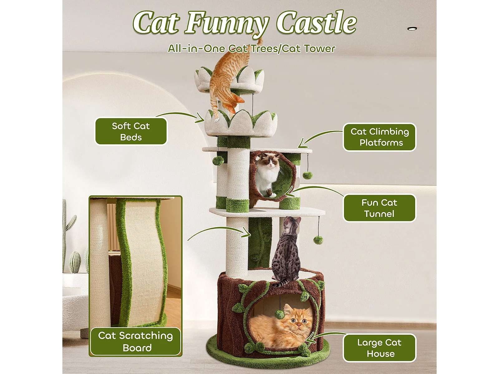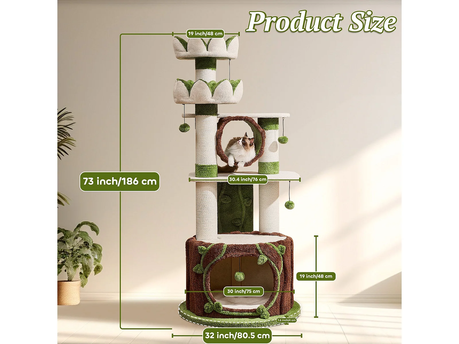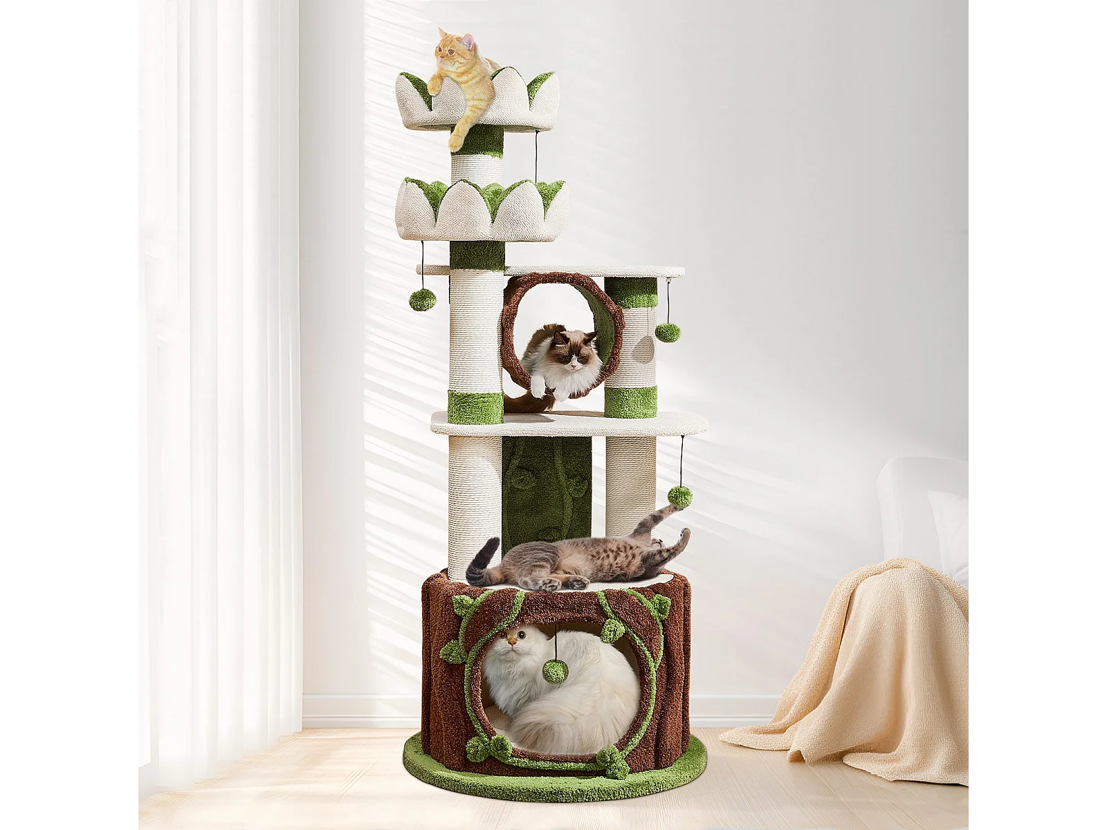 Arbre à chat en bois massif, d80cm×h185cm, blanc