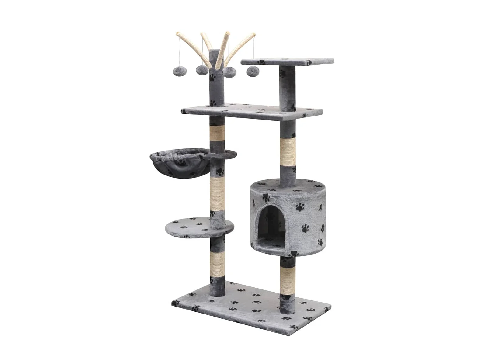 Arbre à chat et griffoir Sisal 125 cm Empreintes de pattes Gris OFR93587 BonneVie Meuble