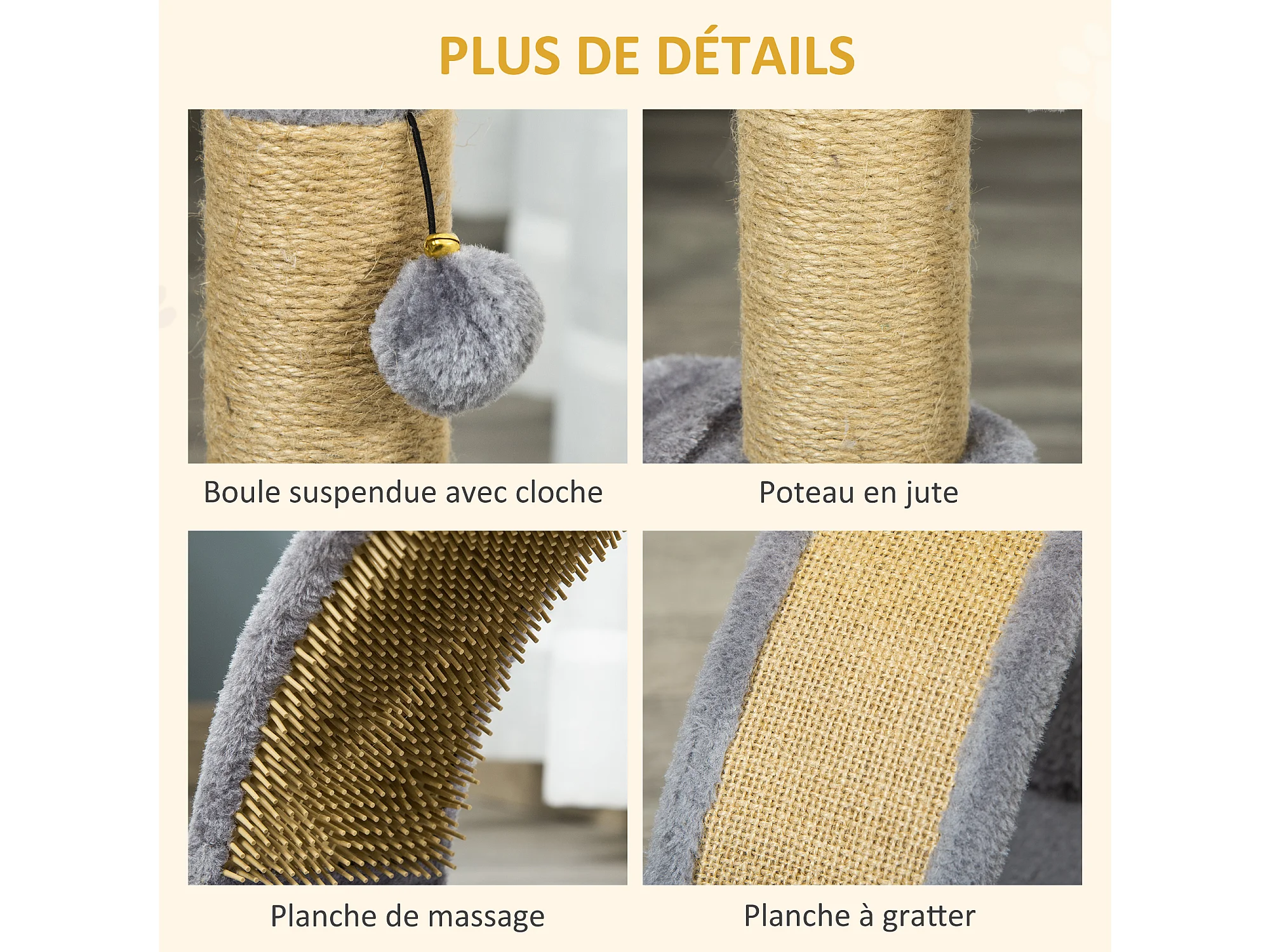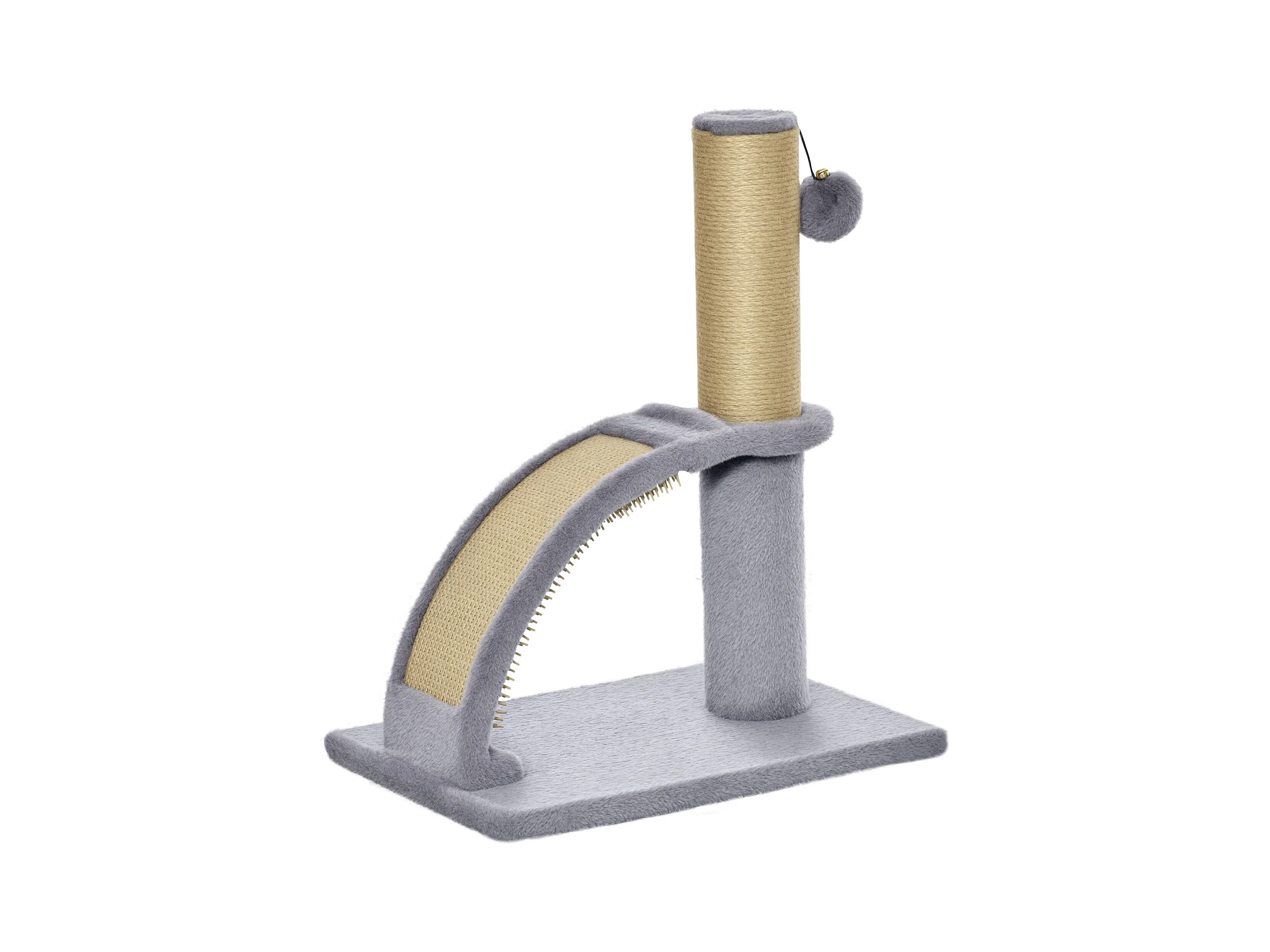 Arbre à chat griffoir grattoir design jeu boule suspendue + demi-arc de massage peluche jute naturelle gris