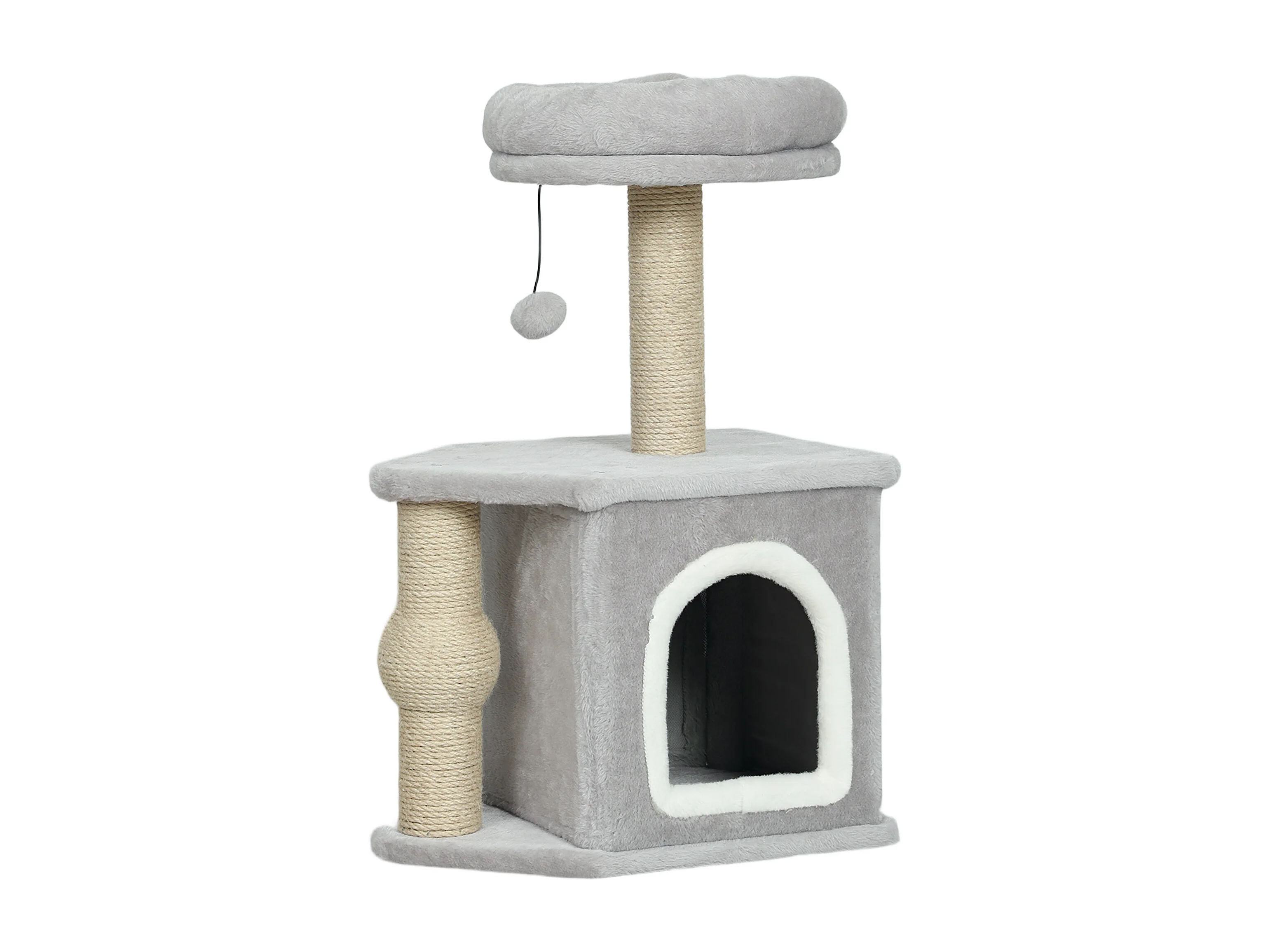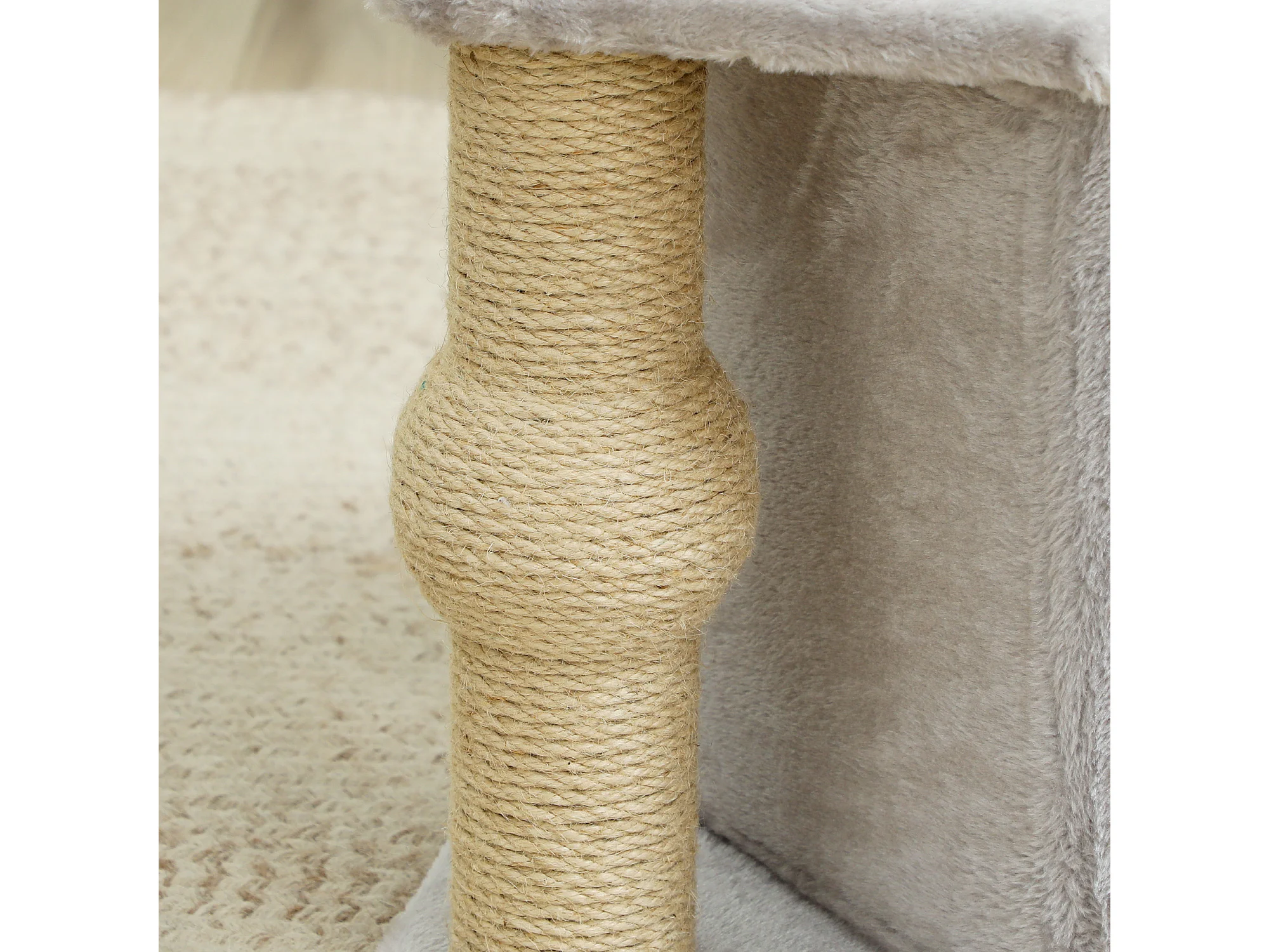 Arbre à chat H.66 cm poteaux à griffer jute lit maison chat plateforme balle de jeu gris