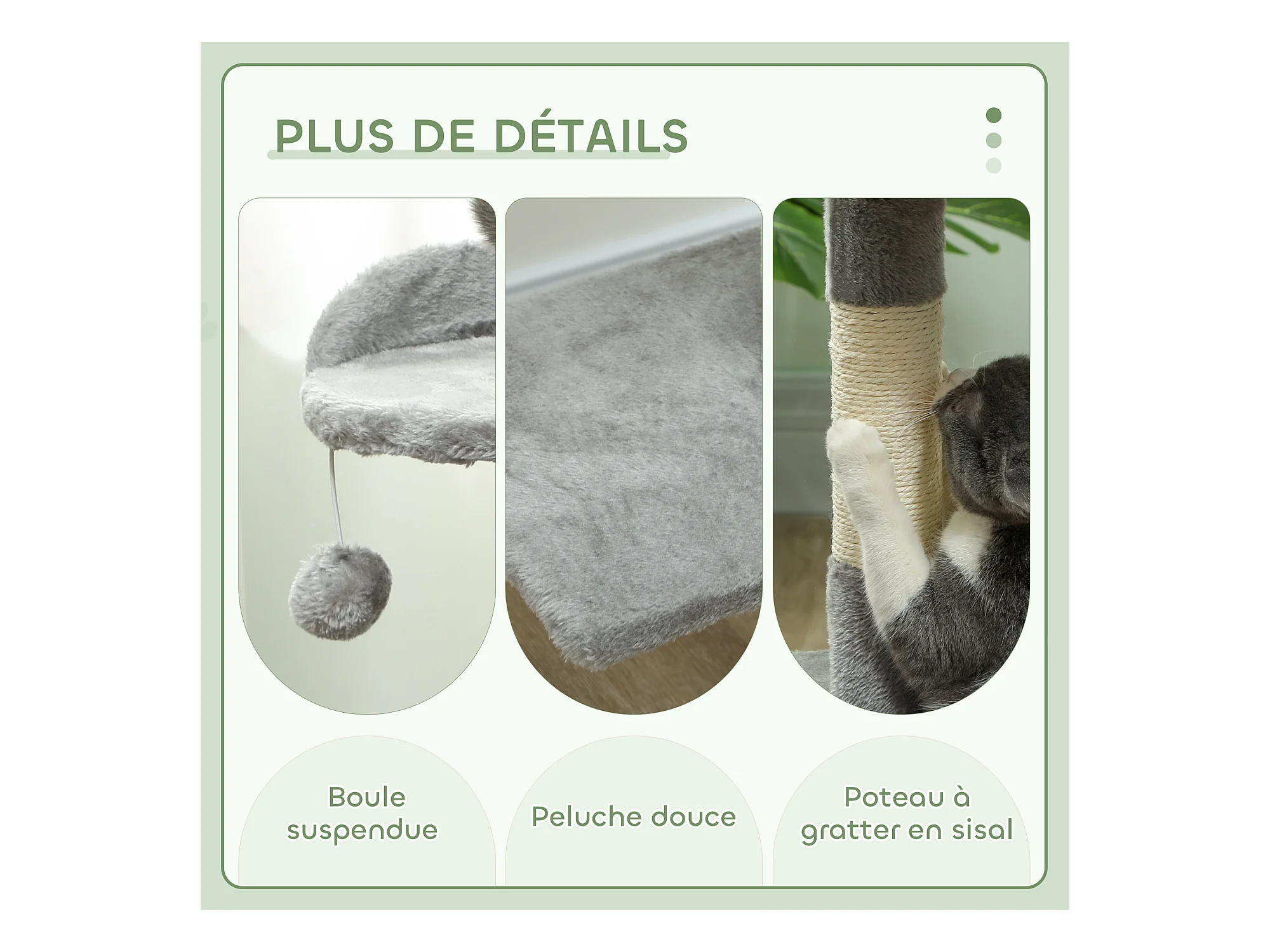 Arbre à chat multi-équipement griffoirs grattoirs plateforme niche hamac jeu boule suspendue gris