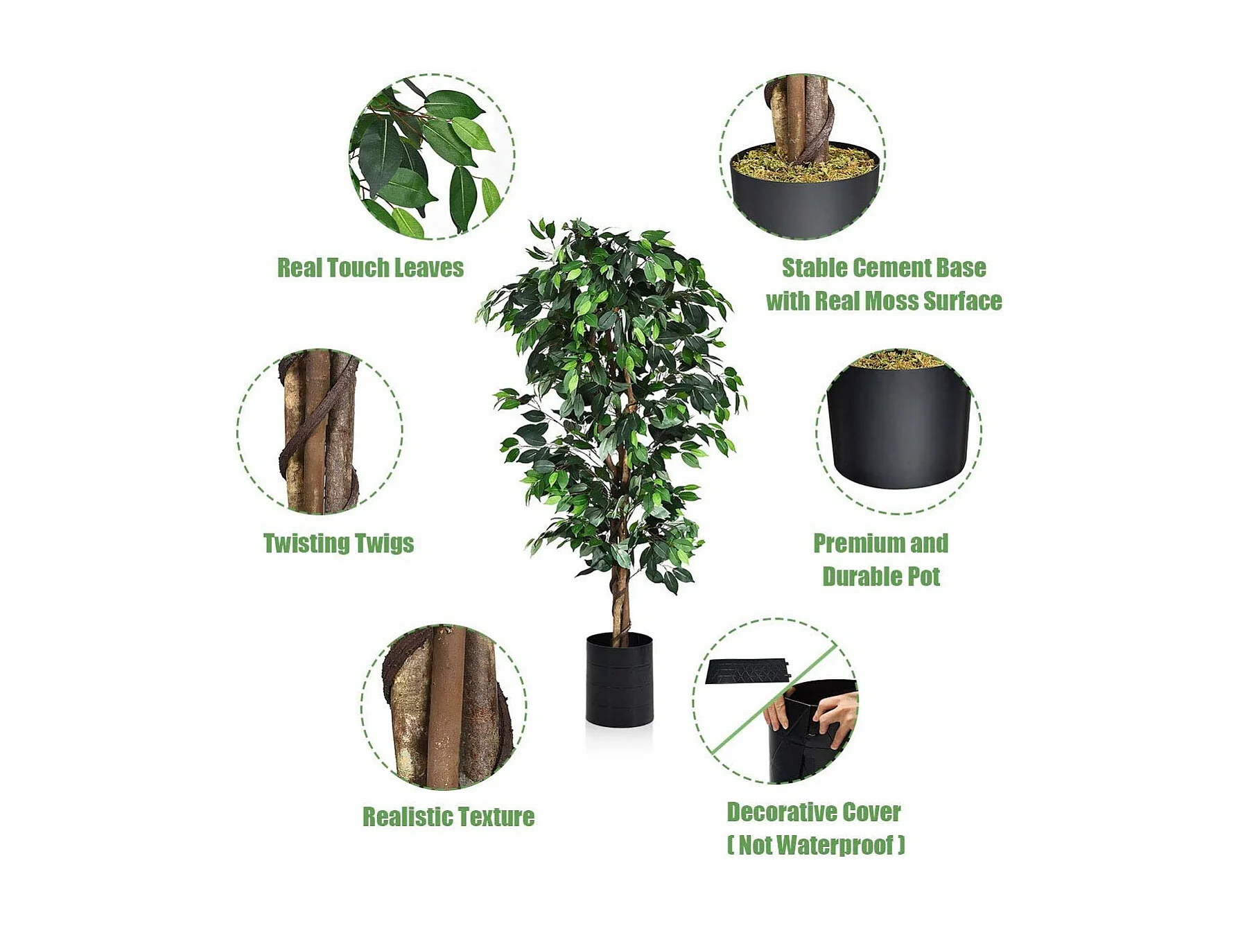 Arbre Artificiel, Plante Artificielle en Pot, Hauteur 180cm,1008 Feuilles et Tige Naturelle, sans Entretien, pour la Décoration de Jardin, Maison, Bureau etc.