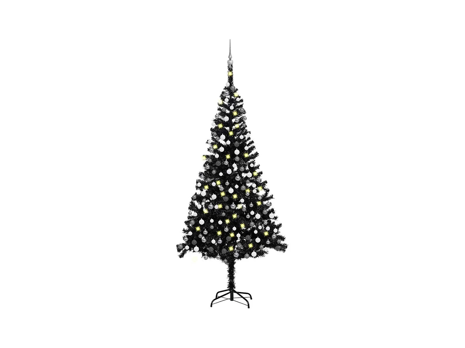 Arbre de Noël artificiel pré-éclairé et boules noir 240 cm PVC