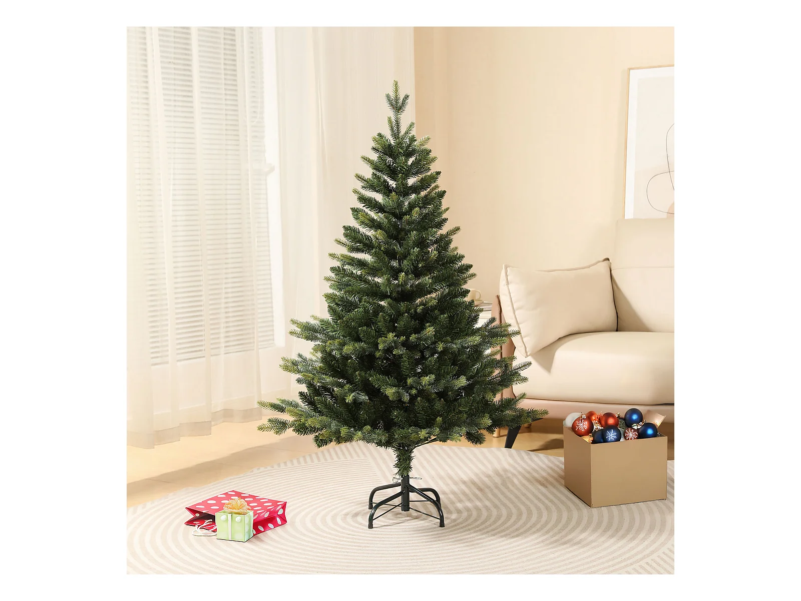Arbre de Noël artificiel pré-éclairé/boules 150 cm 380 branches