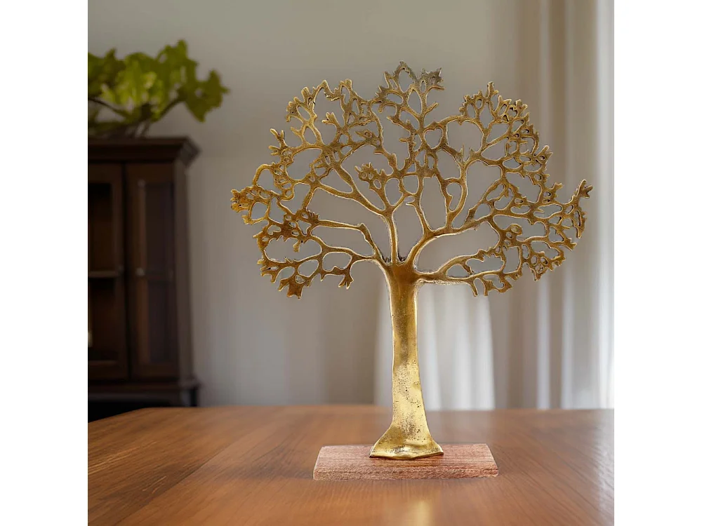 Arbre décoratif en aluminium doré et bois de manguier Arbre de vie Taille 3