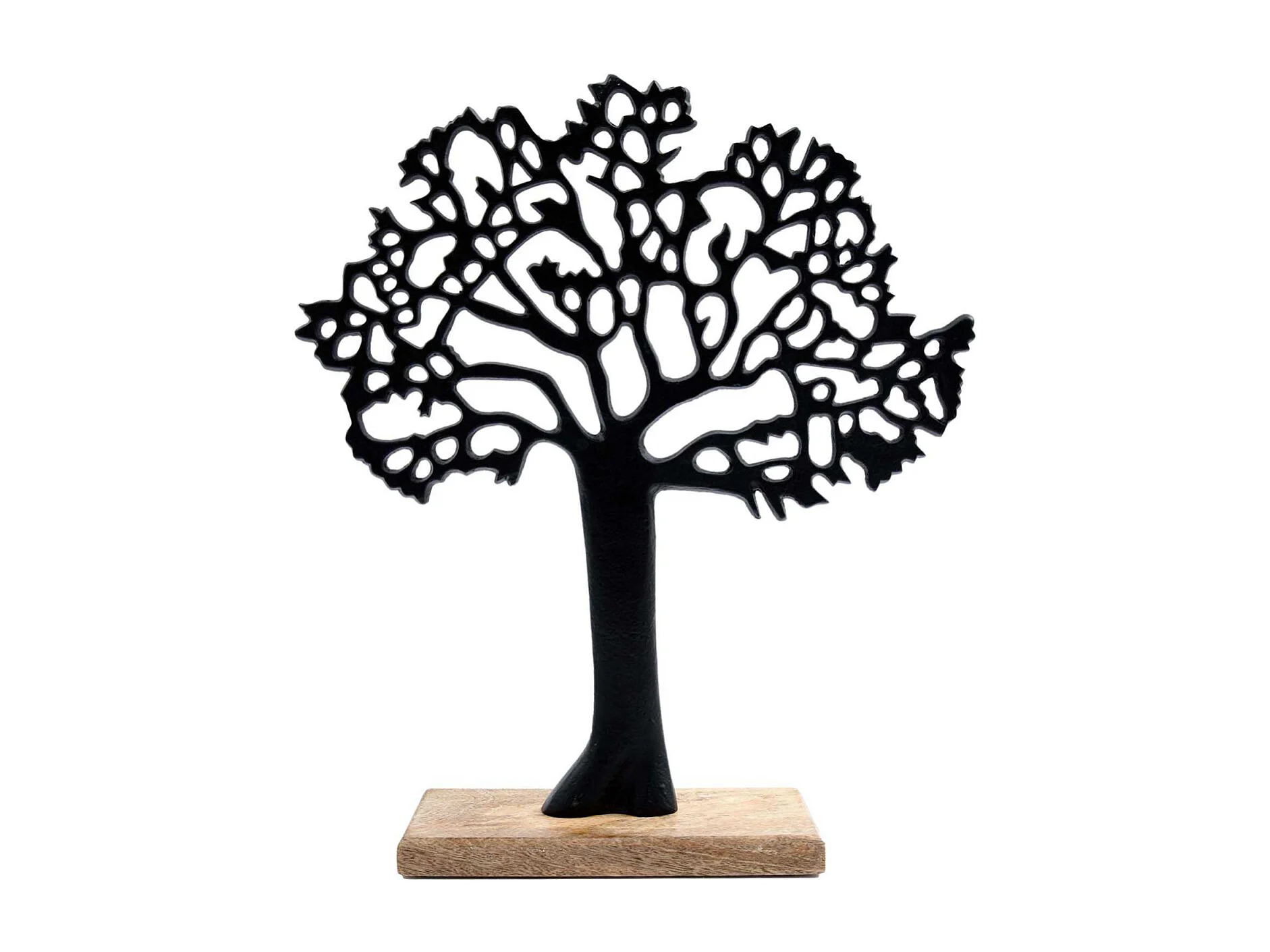 Arbre décoratif en aluminium noir et bois de manguier Arbre de vie