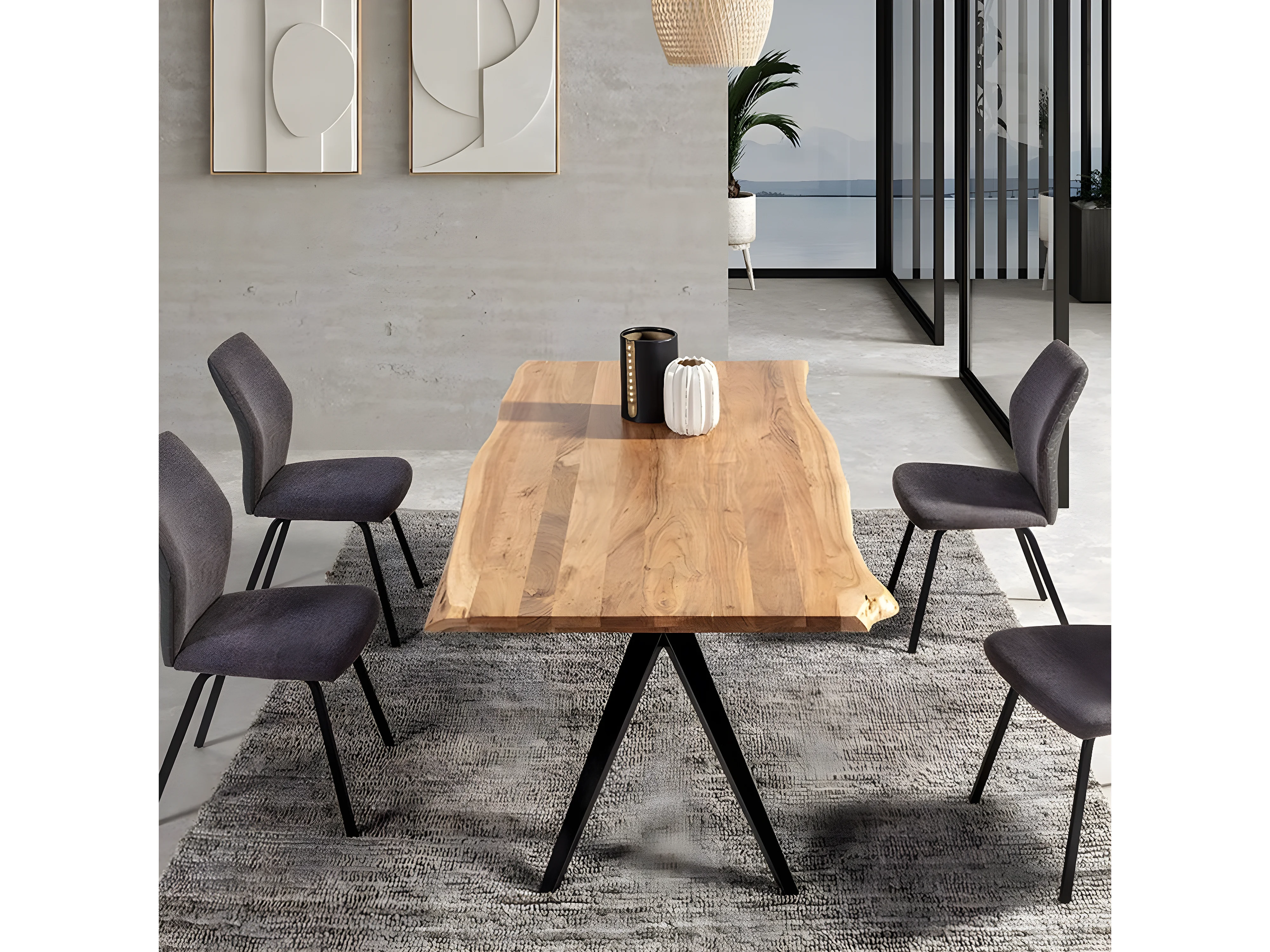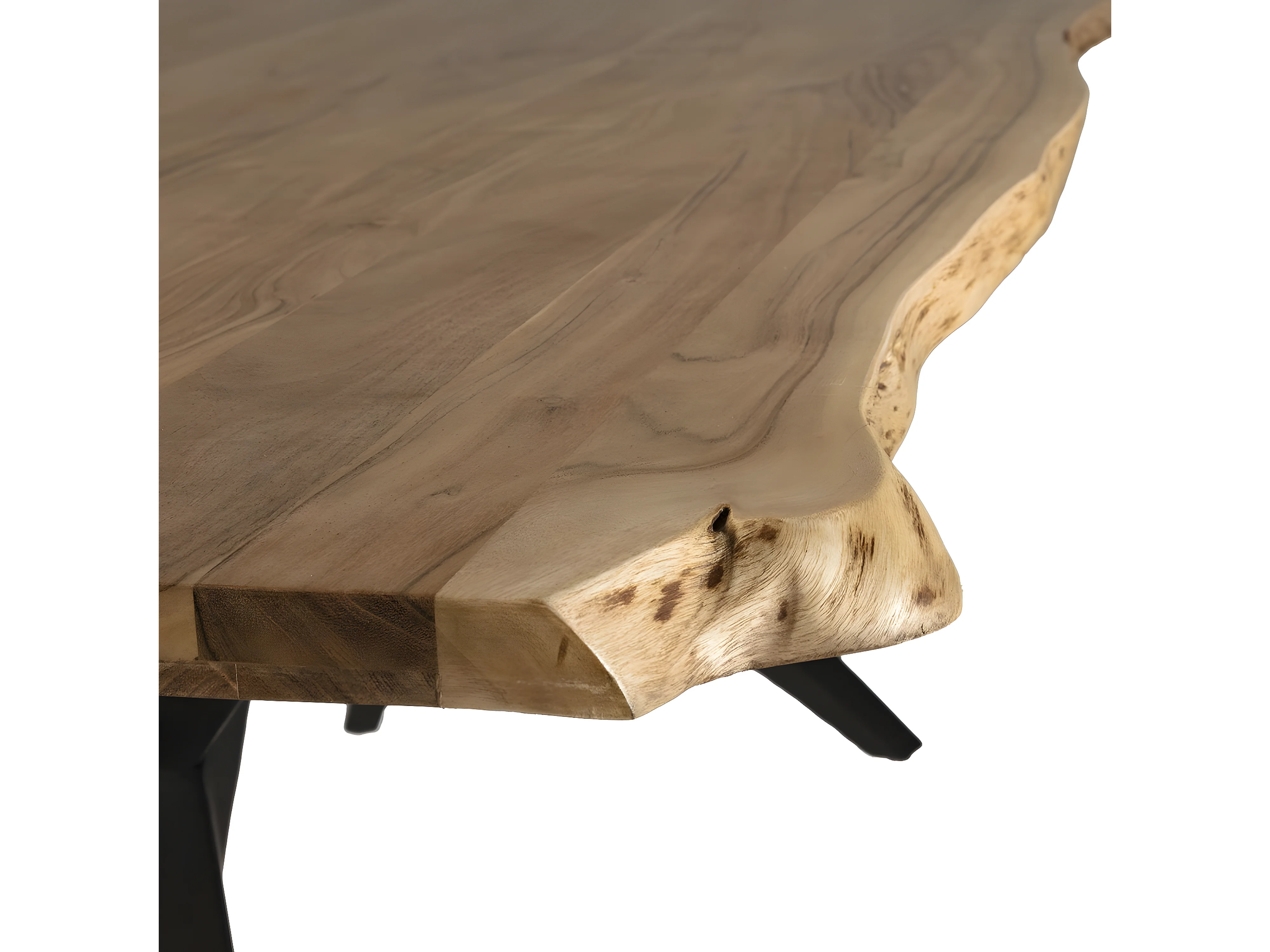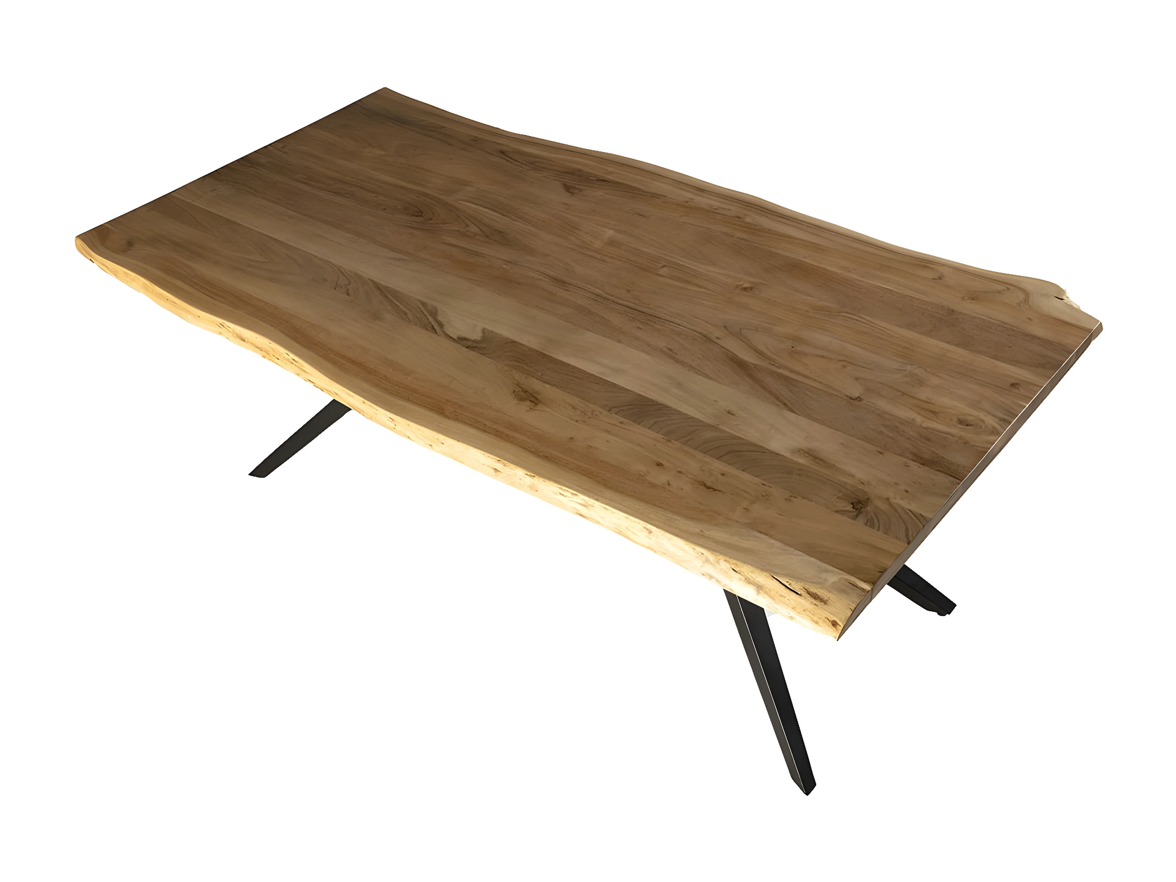 ARCANE - Table de Repas 200cm en Acacia Massif Piétement Evasé Métal Noir