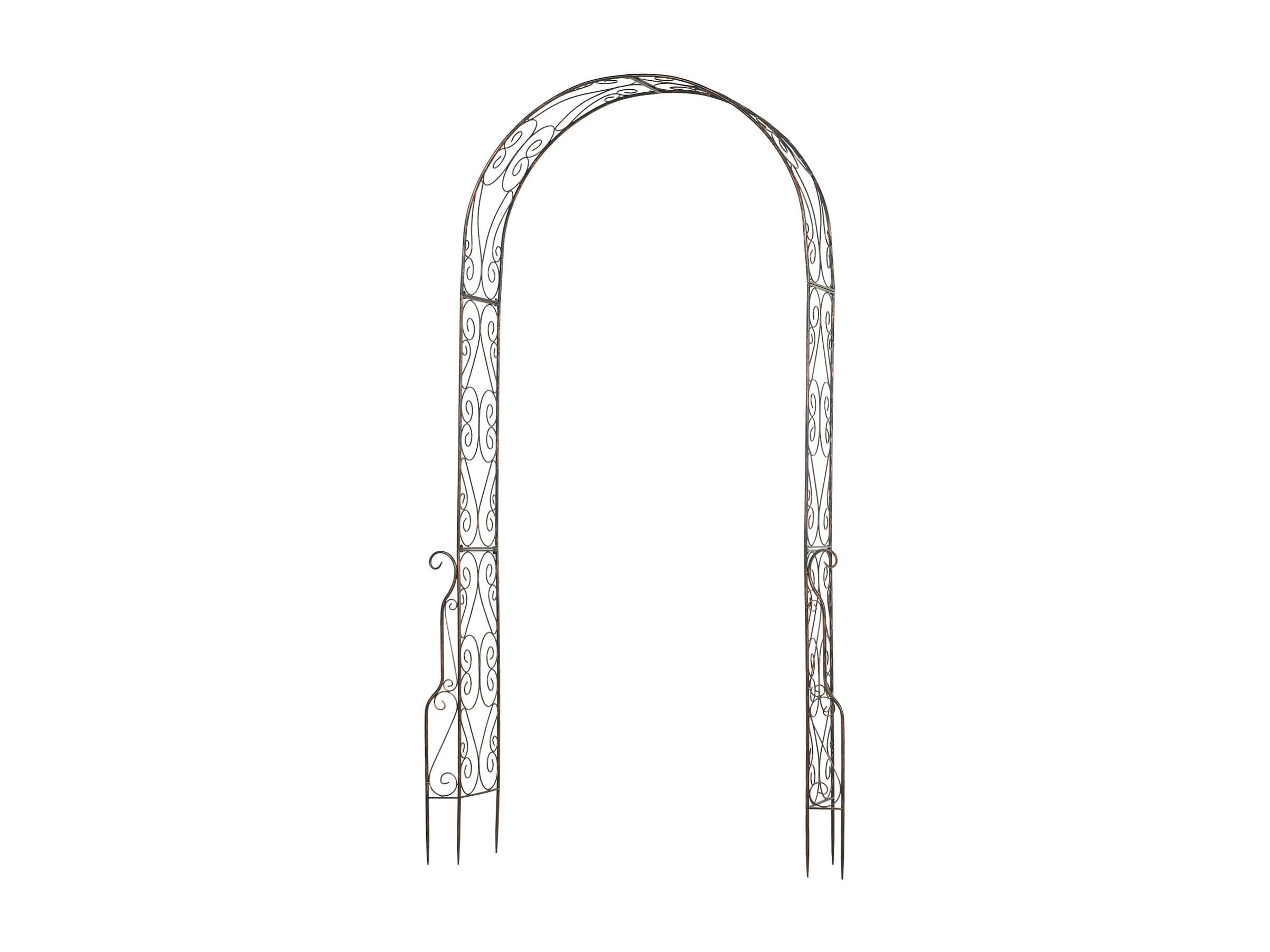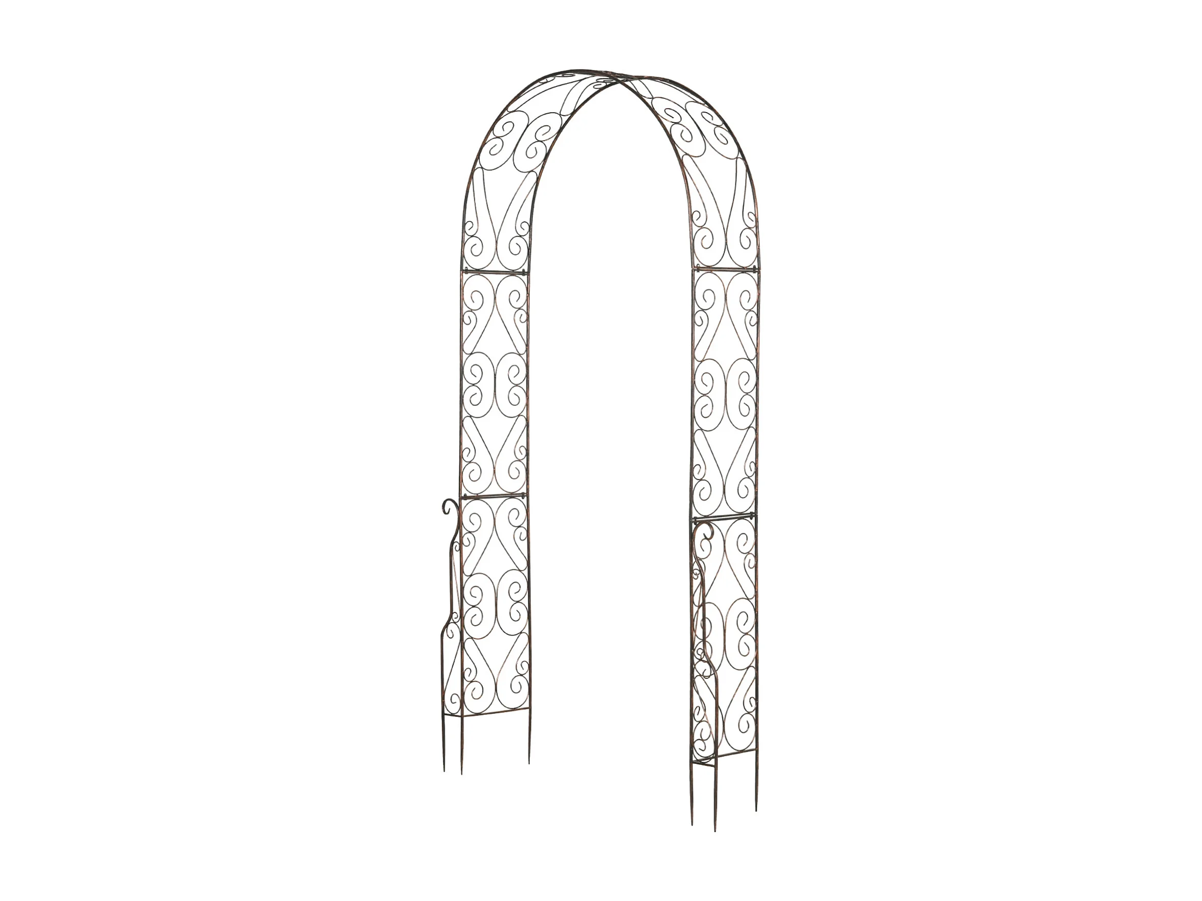 Arche de jardin arche à rosiers style fer forgé dim. 120L x 30l x 226H cm métal époxy noir vieilli cuivré