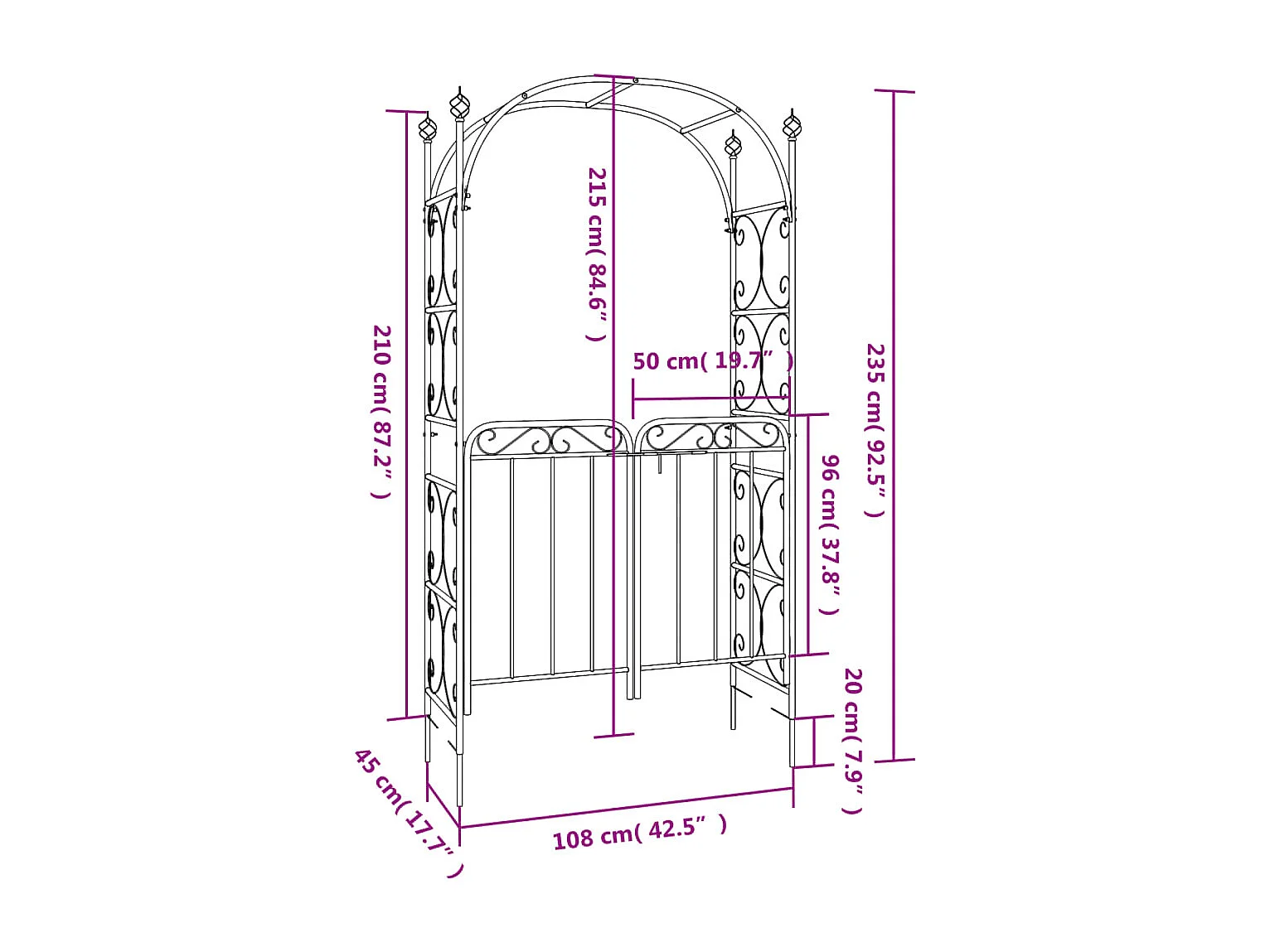 Arche de jardin avec portail noir 108x45x235 acier