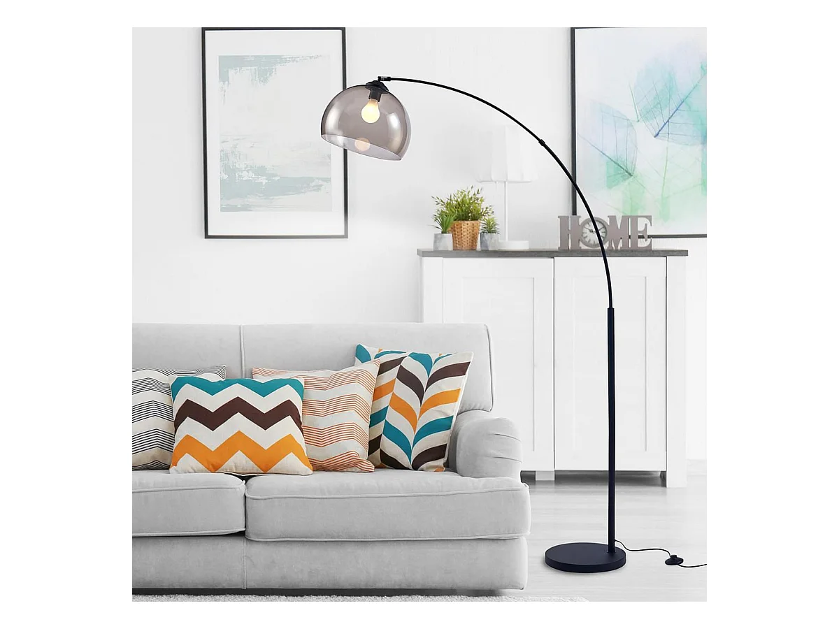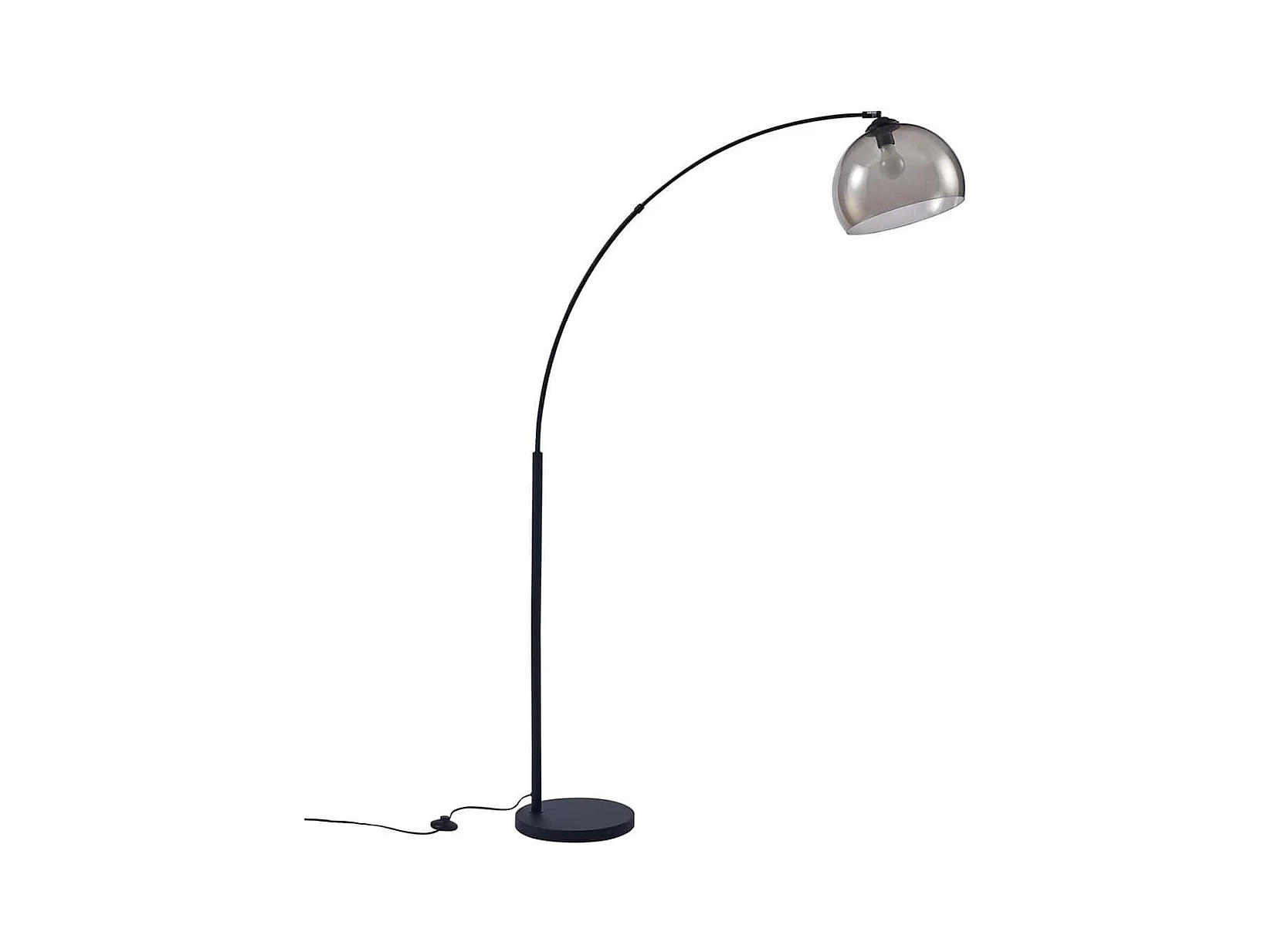ARCHIE - Lampadaire Arc en Métal Noir Abat-Jour Acrylique Fumé Violet
