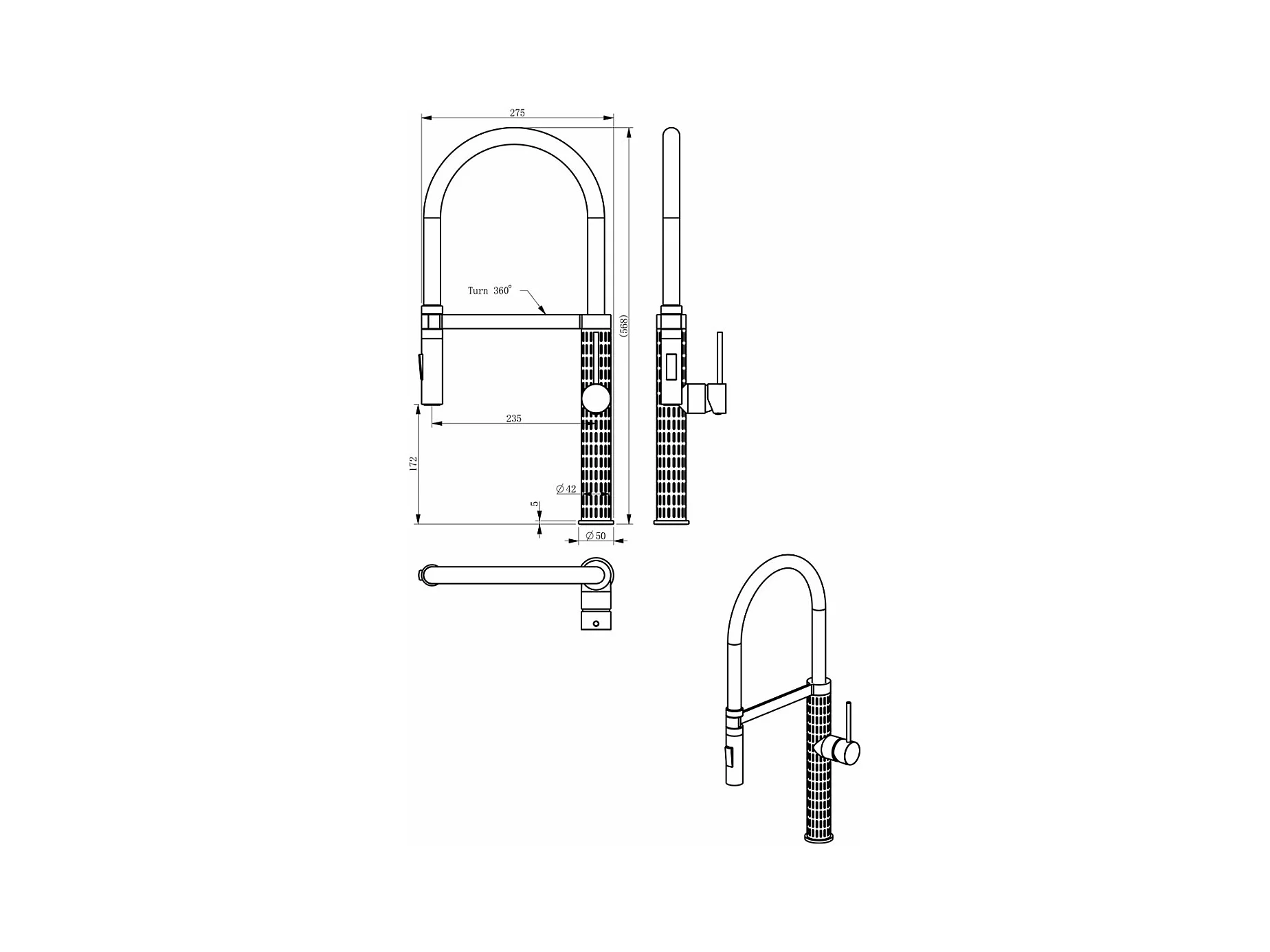 Architek mitigeur évier à douchette mobile or brossé - Essebagno