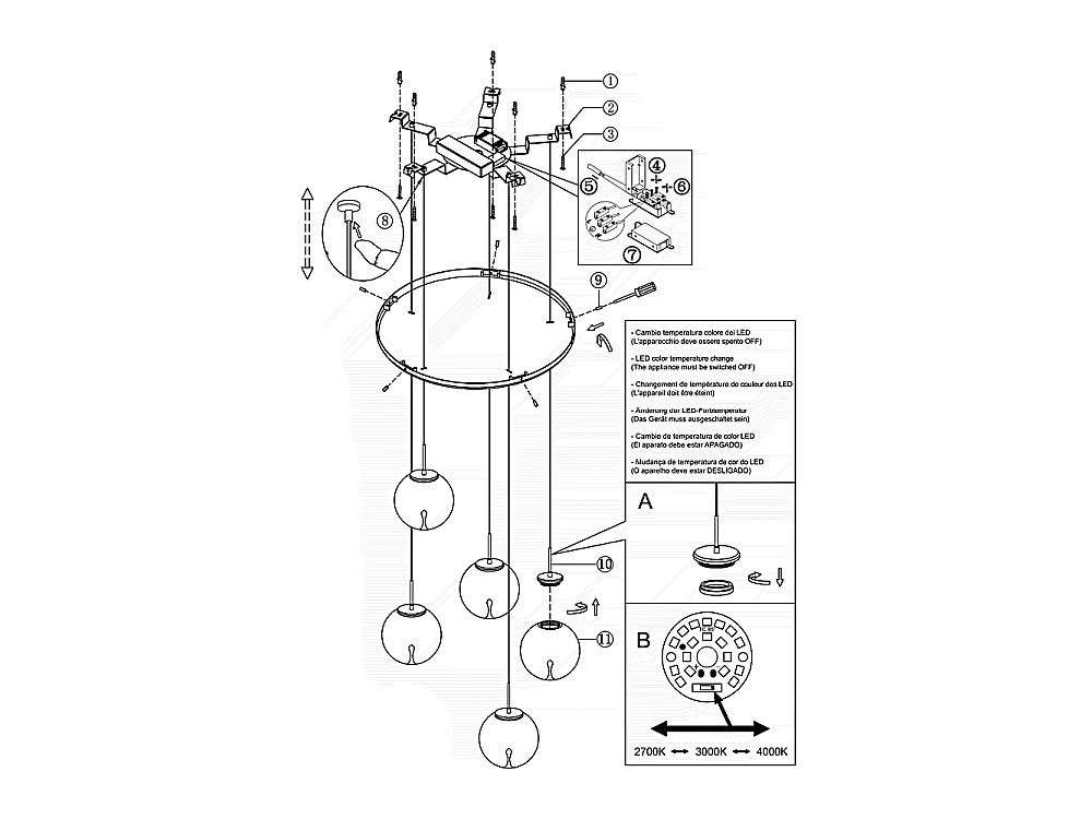 Ariel - Suspension circulaire Fabas Luce 5 lumières - LED 35W dimmable - Rosace ronde transparente d.50cm