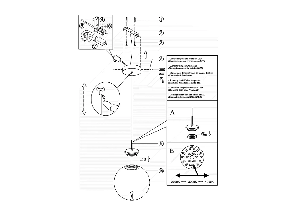 Ariel - Suspension simple transparente de Fabas Luce - LED 14W dimmable - Plafonnier design moderne