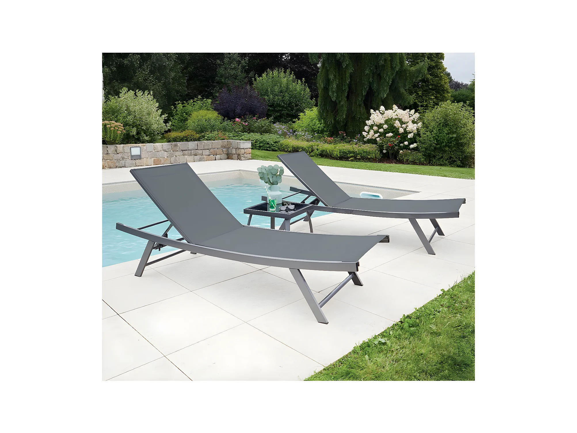 ARIO - Ensemble transat de jardin et table basse - Gris anthracite