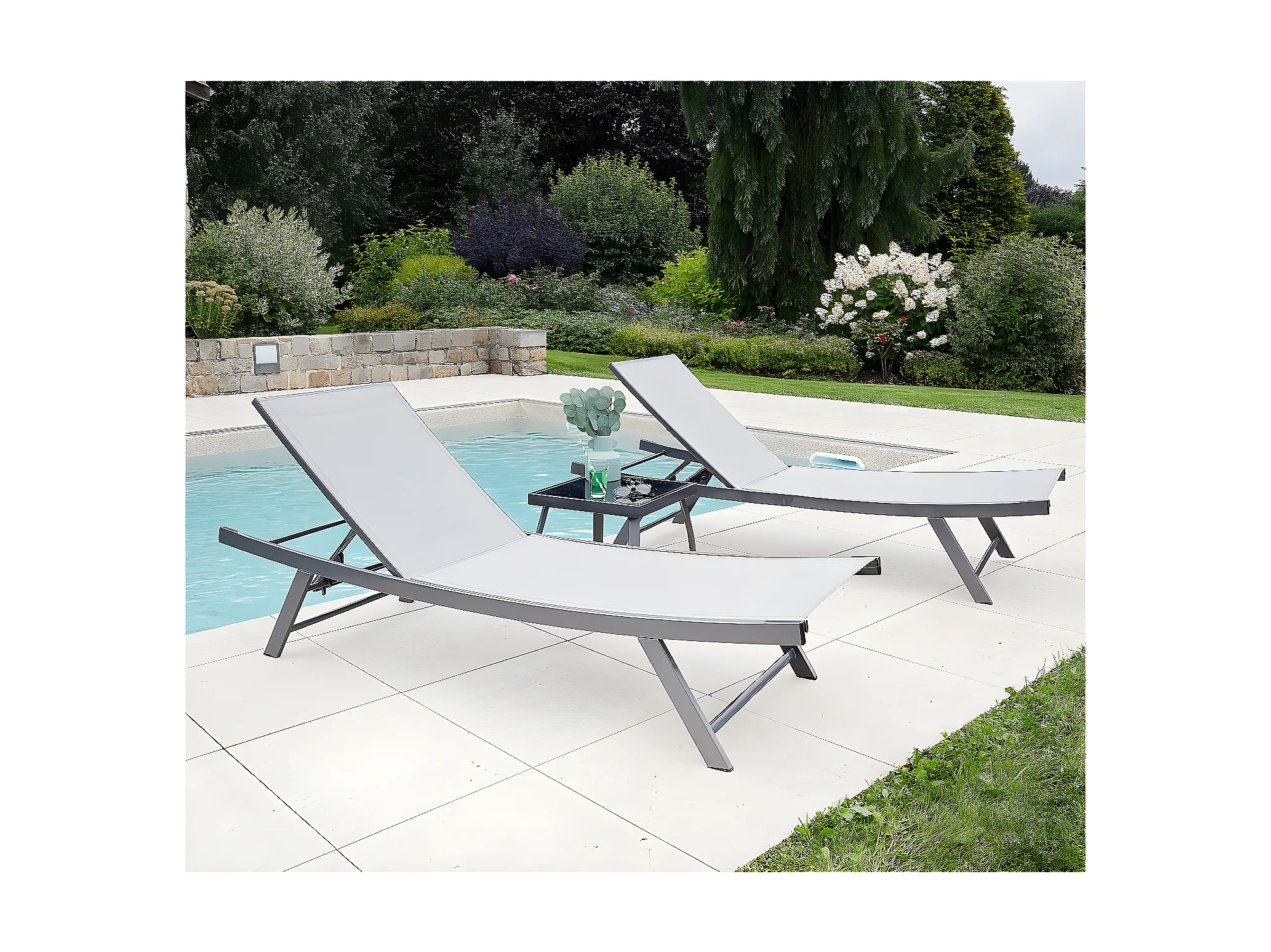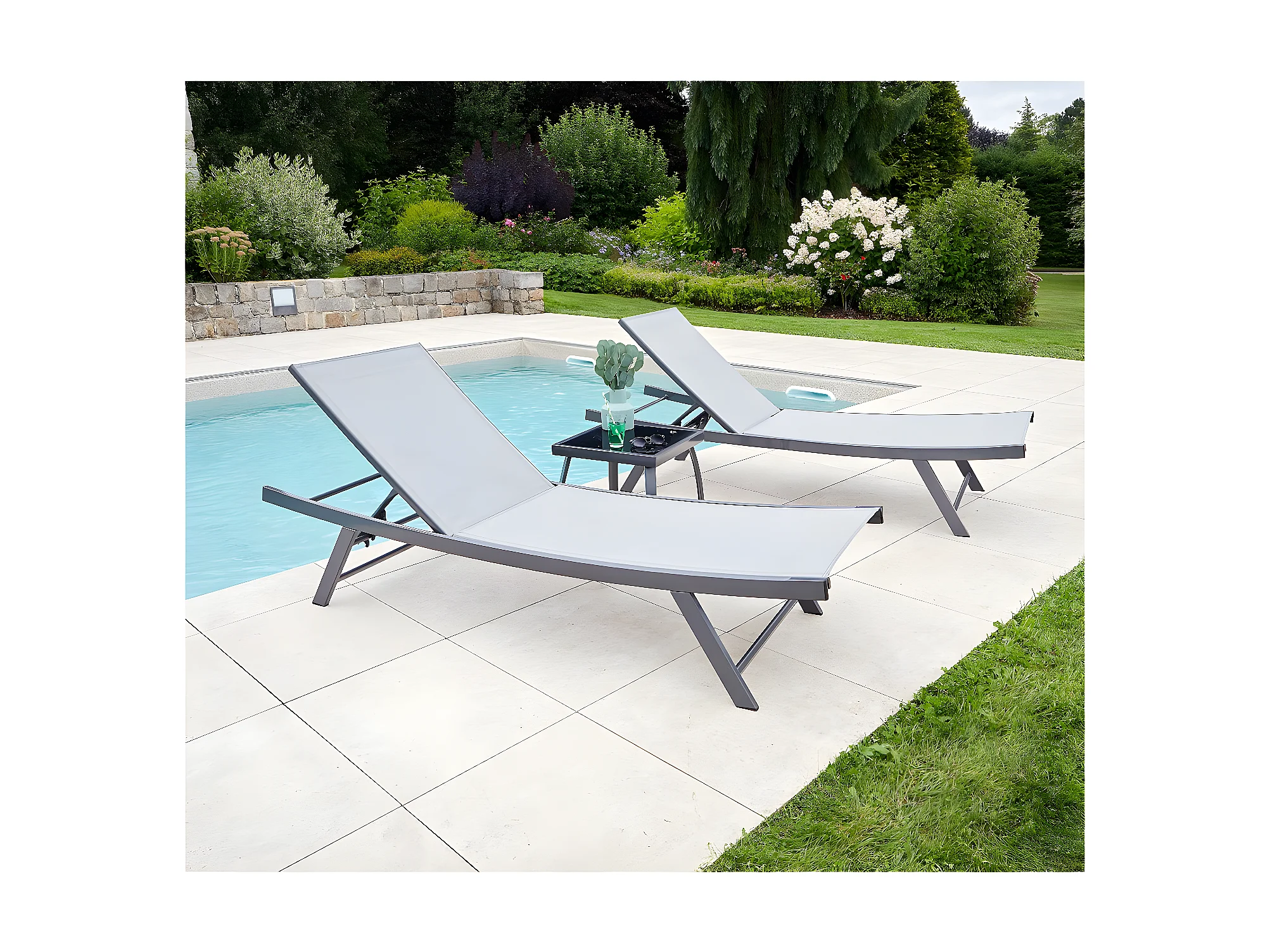 ARIO - Ensemble transat de jardin et table basse - Gris Perle