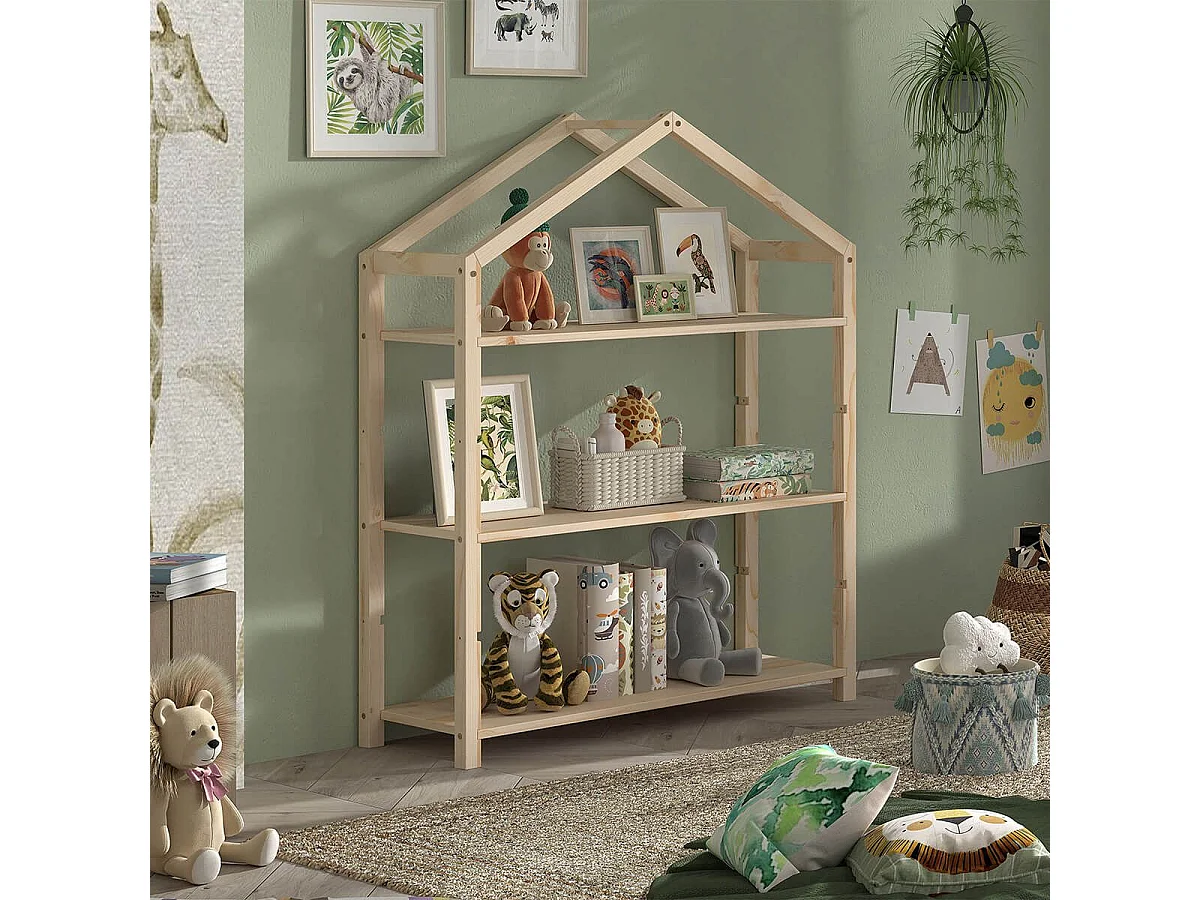 ARKAN - Bibliothèque Cabane en Pin Massif Naturel 3 Niveaux