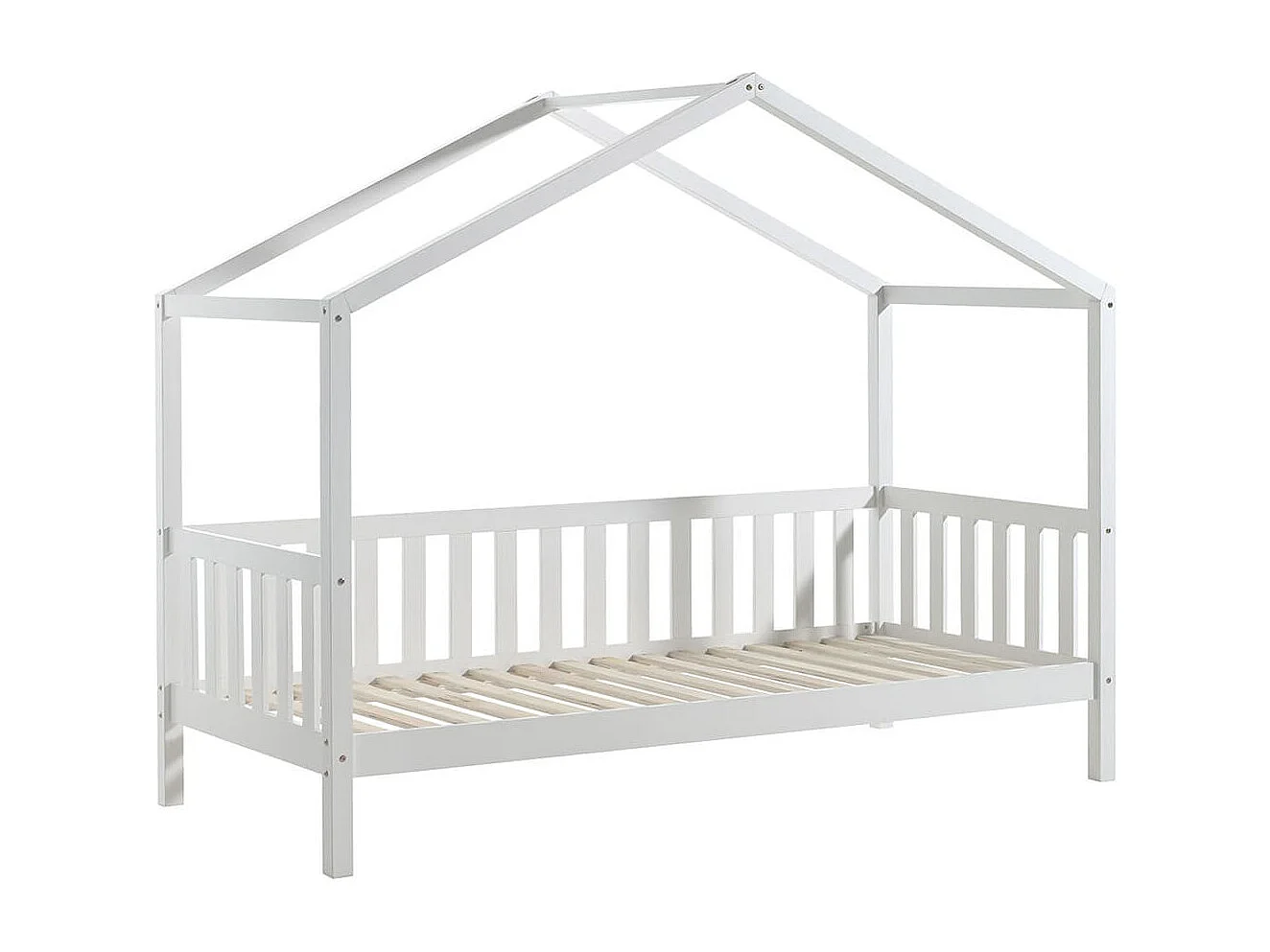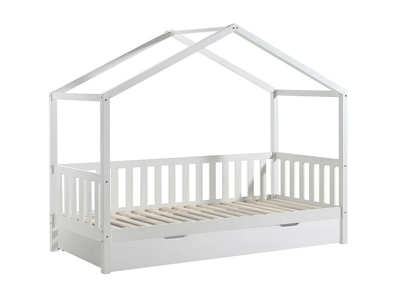 ARKAN - Lit Maison à Barrières 90x200cm Pin Blanc + Tiroir