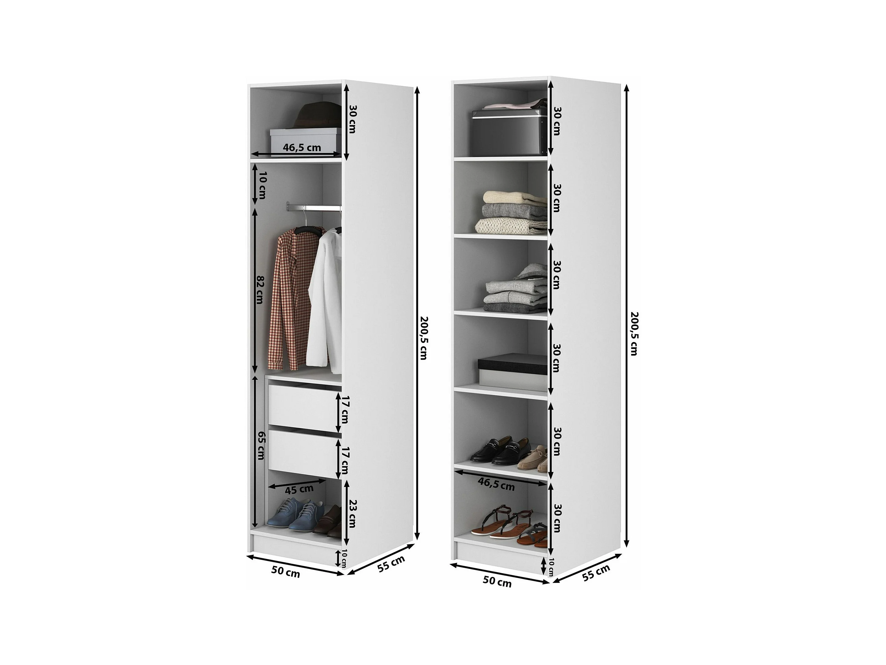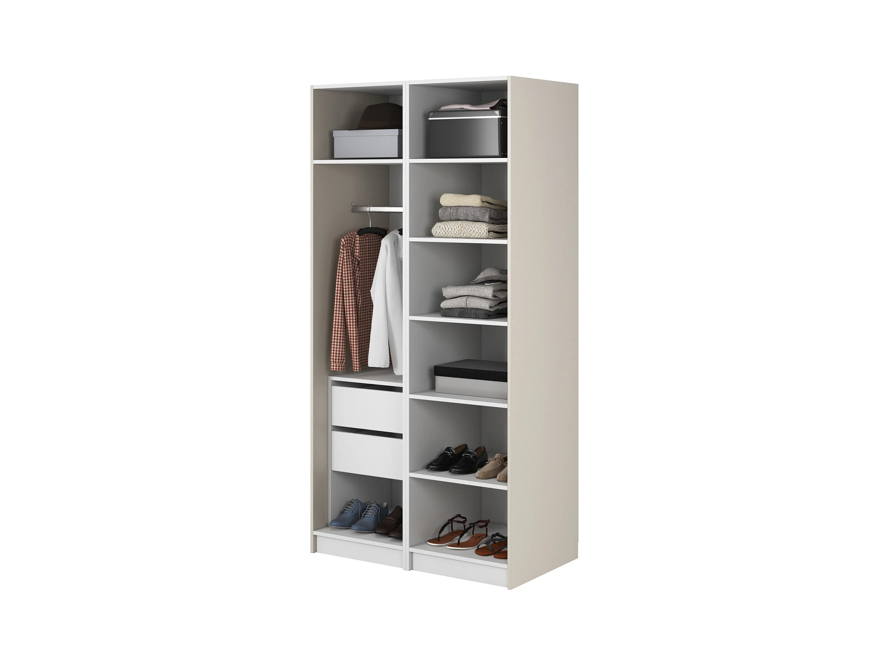 Armoire 2 portes avec tringle et tiroirs - 100 cm - grège - MOONIR