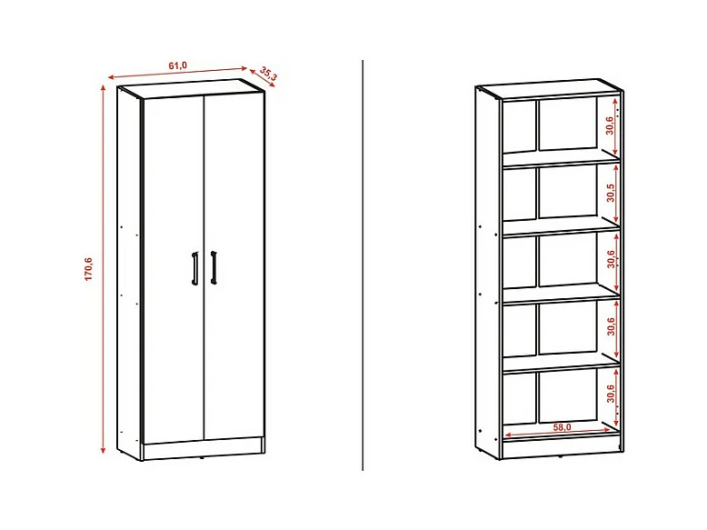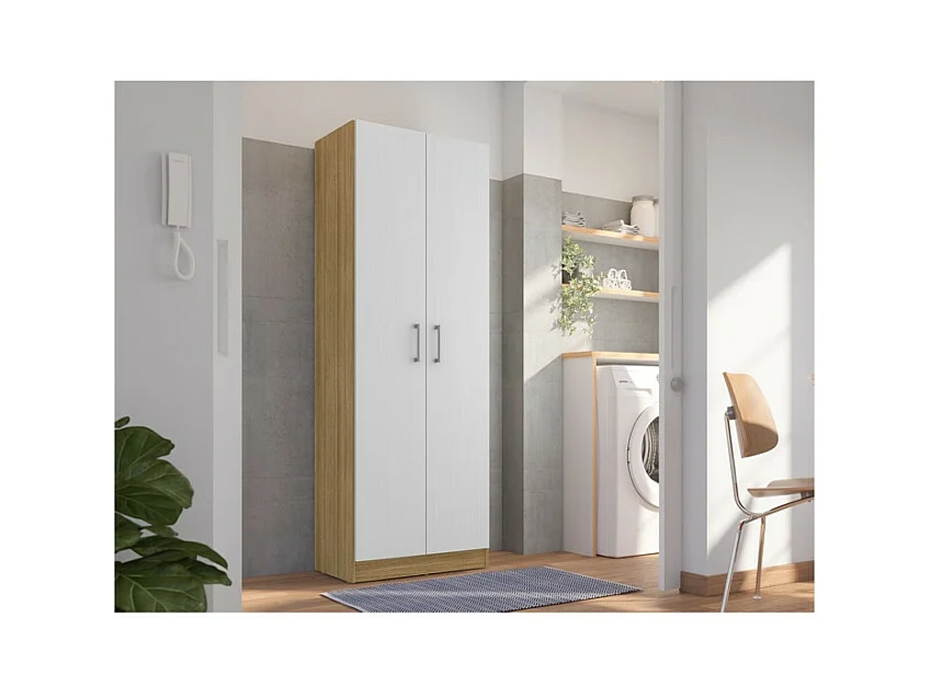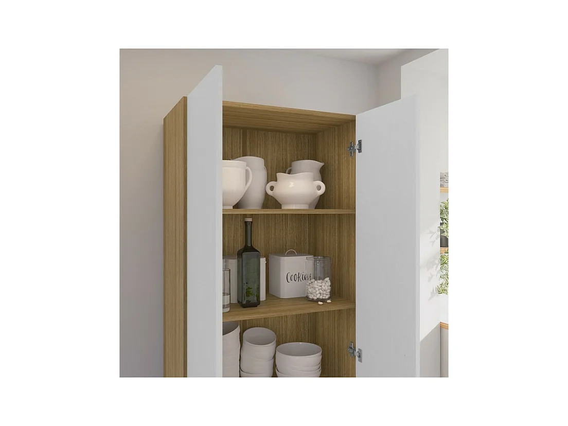 Armoire 2 Portes Chêne et Blanc 5 Niches L 61 H 170.6 P 35.3 cm