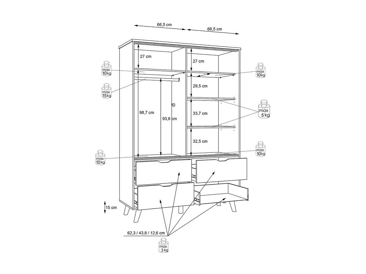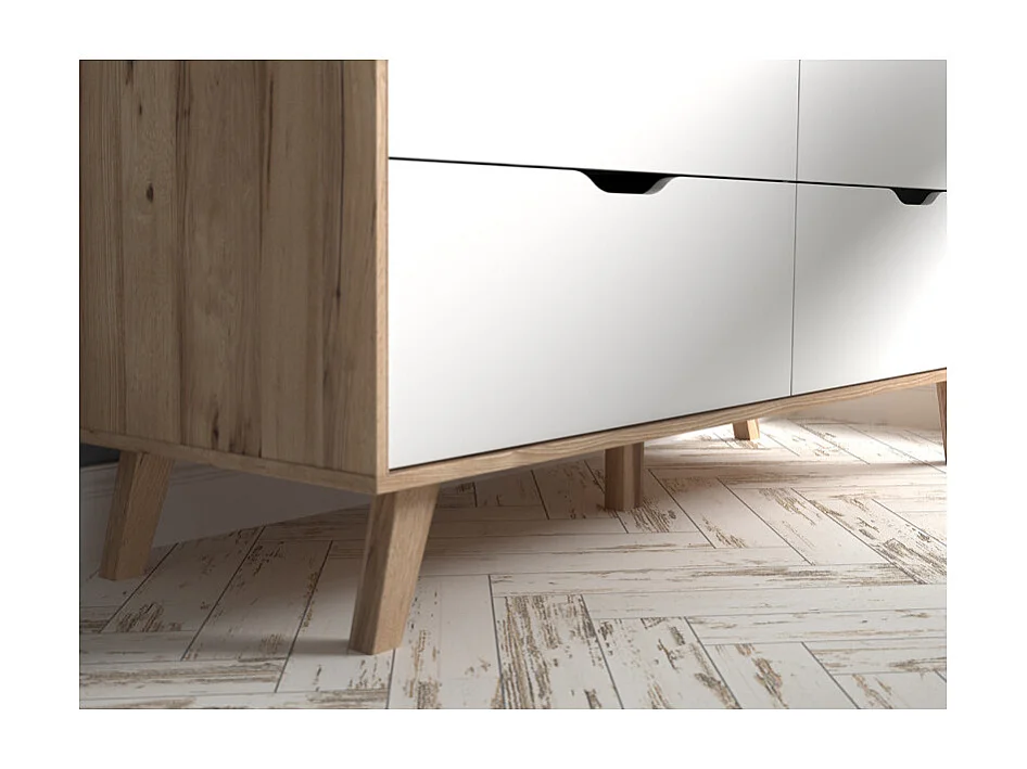 Armoire 2 portes coulissantes 4 tiroirs décor chêne et blanc - ALBANE