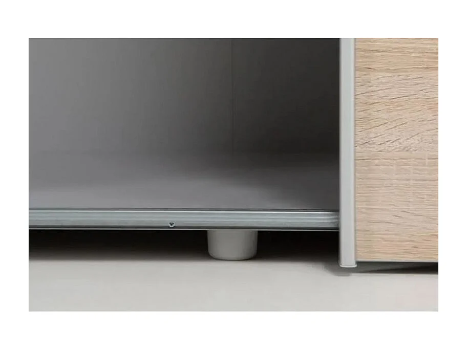 Armoire 2 portes coulissantes 5 tablettes décor bois et miroir - JEIK