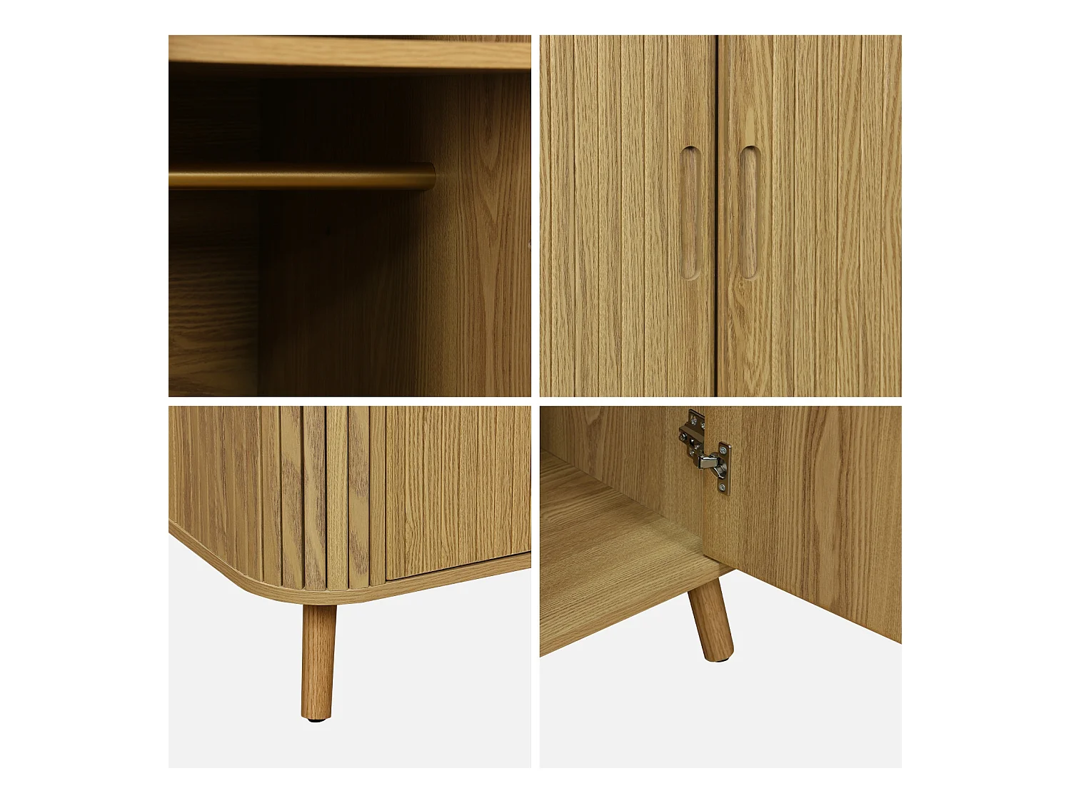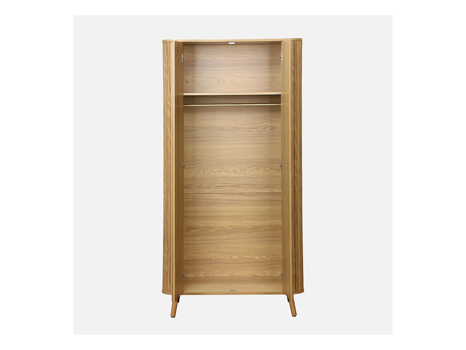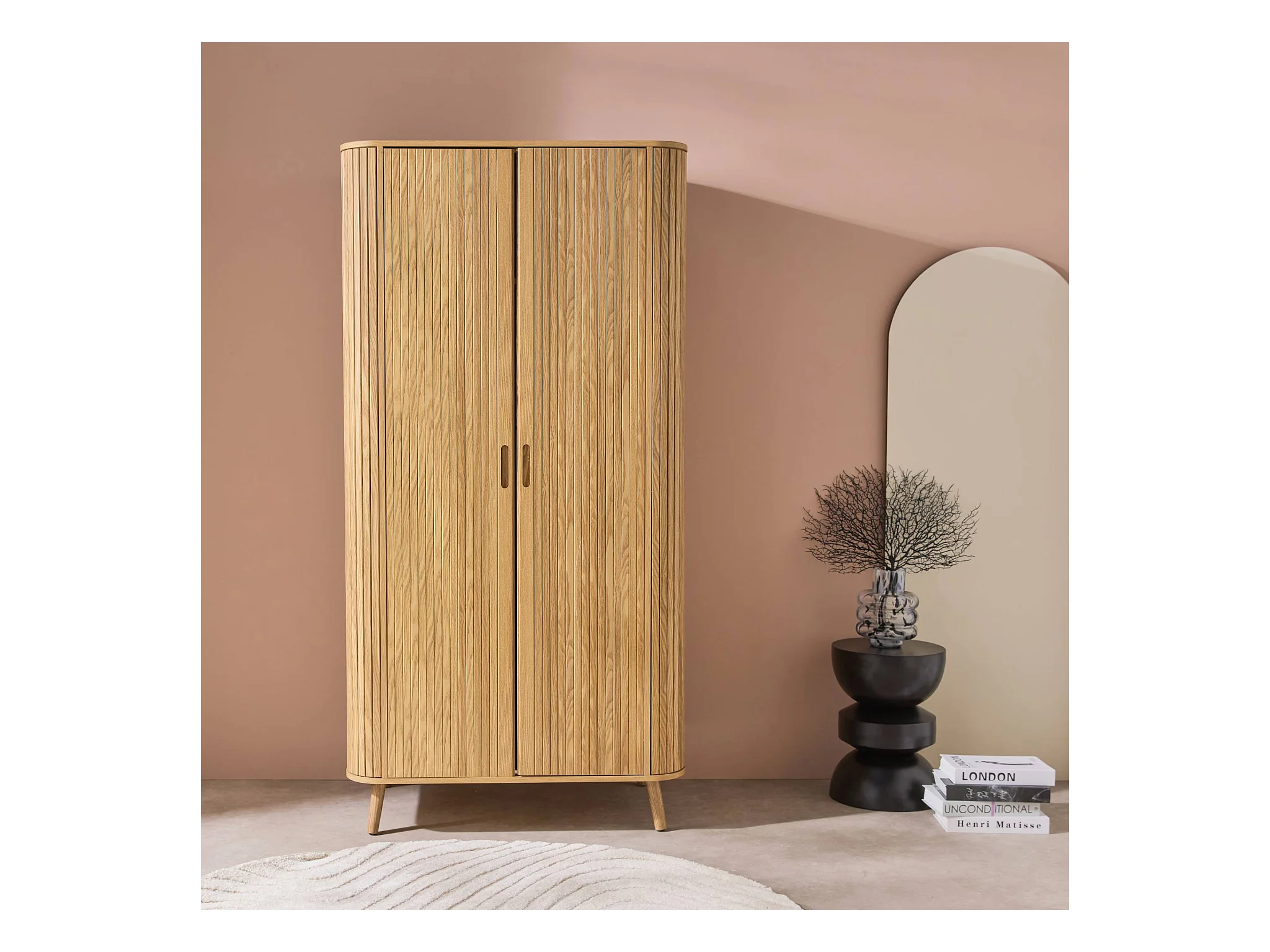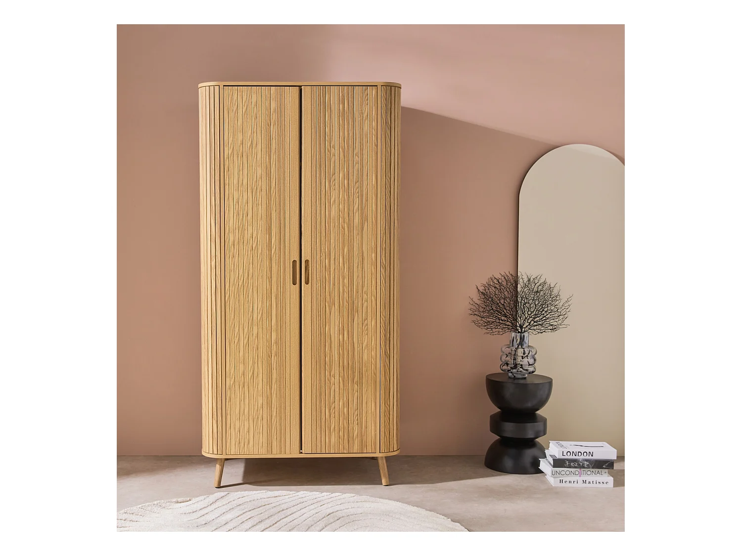 Armoire 2 portes décor bois rainuré avec étagère et penderie. L 90 x P 60 x H 180cm
