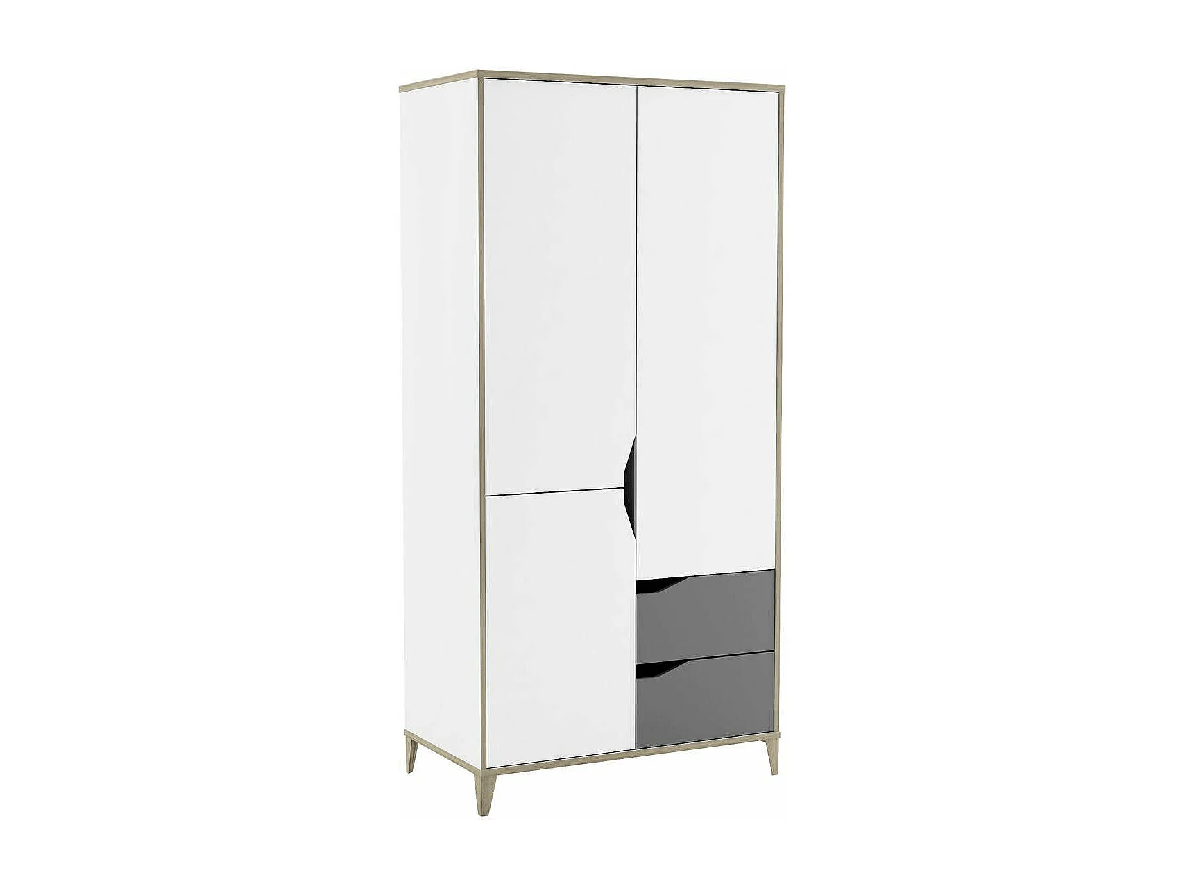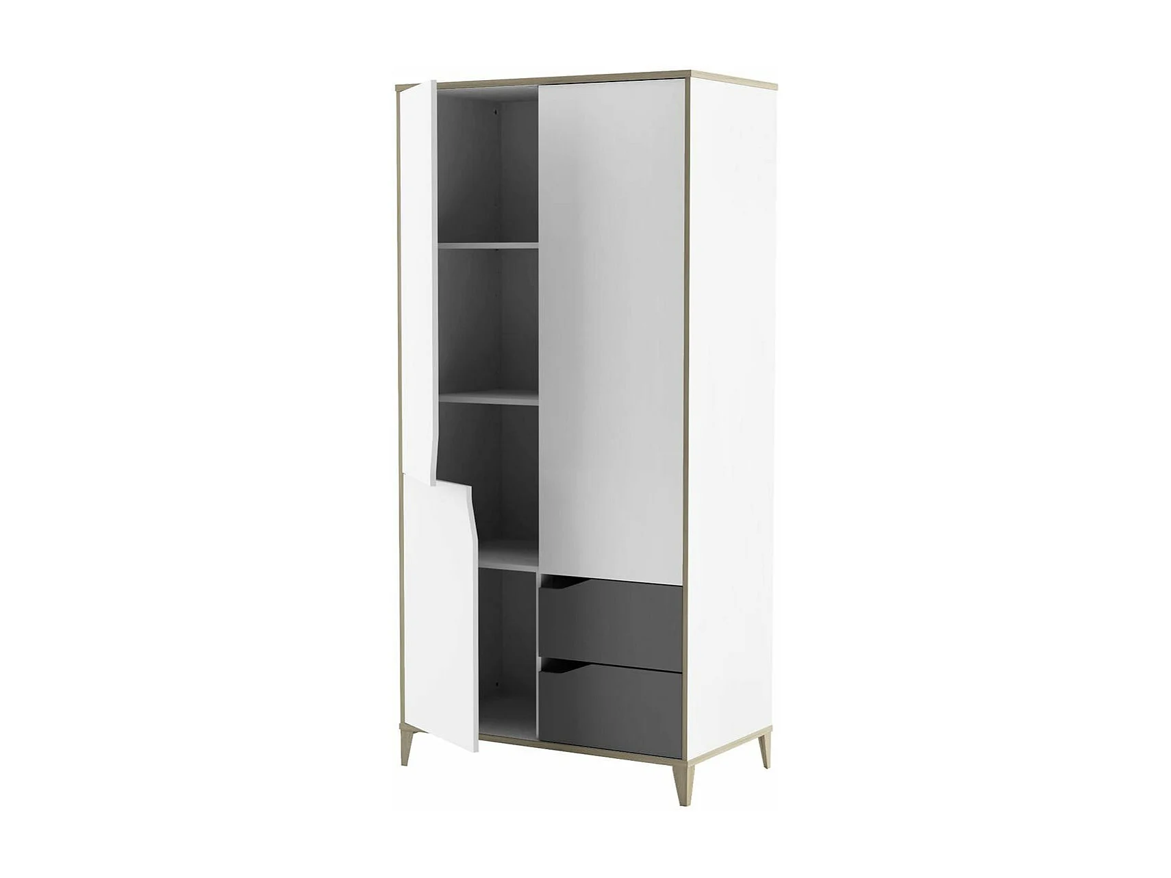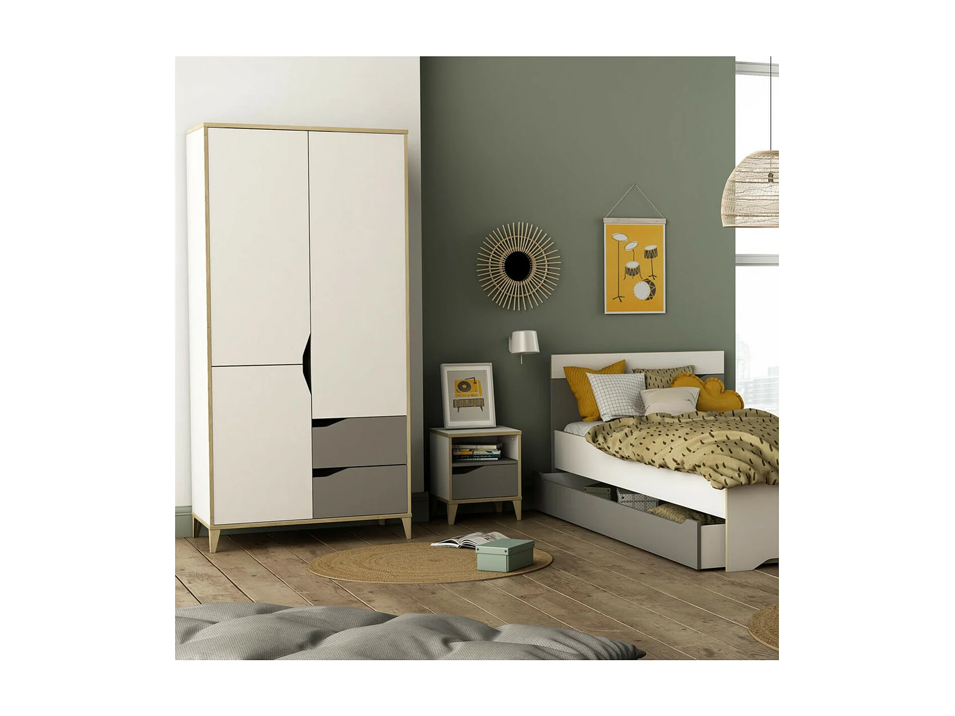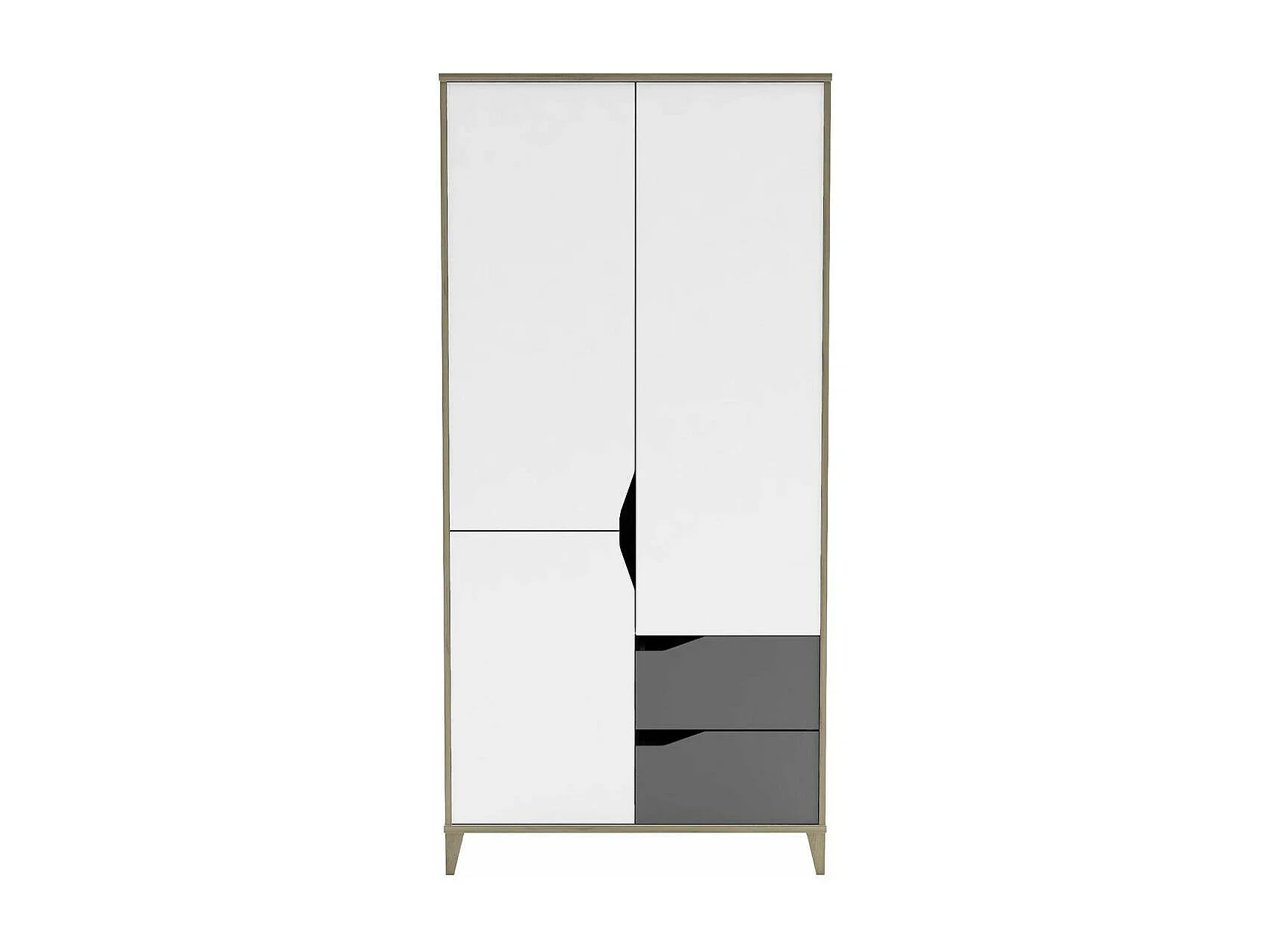Armoire 3 Portes 2 Tiroirs L88,9 cm - Blanc et Gris - Genius