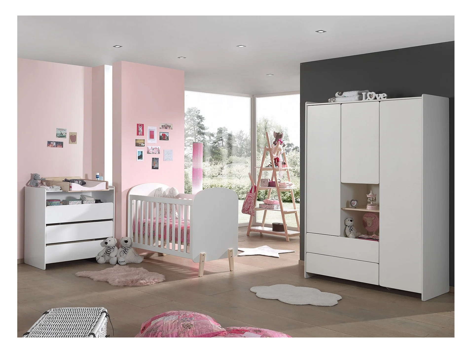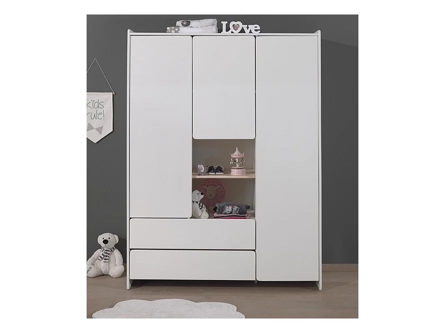 Armoire 3 Portes & 2 Tiroirs "Kiddy" 190cm Blanc