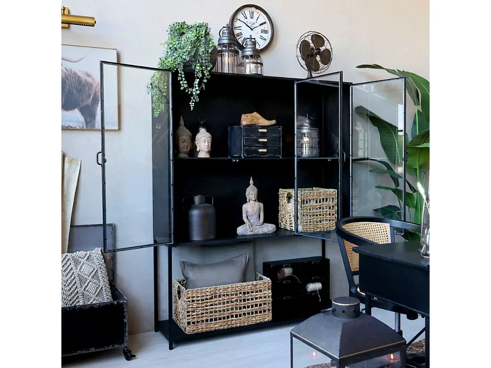 Armoire 3 portes rangement chambre salle de bain métallique noir 175cm