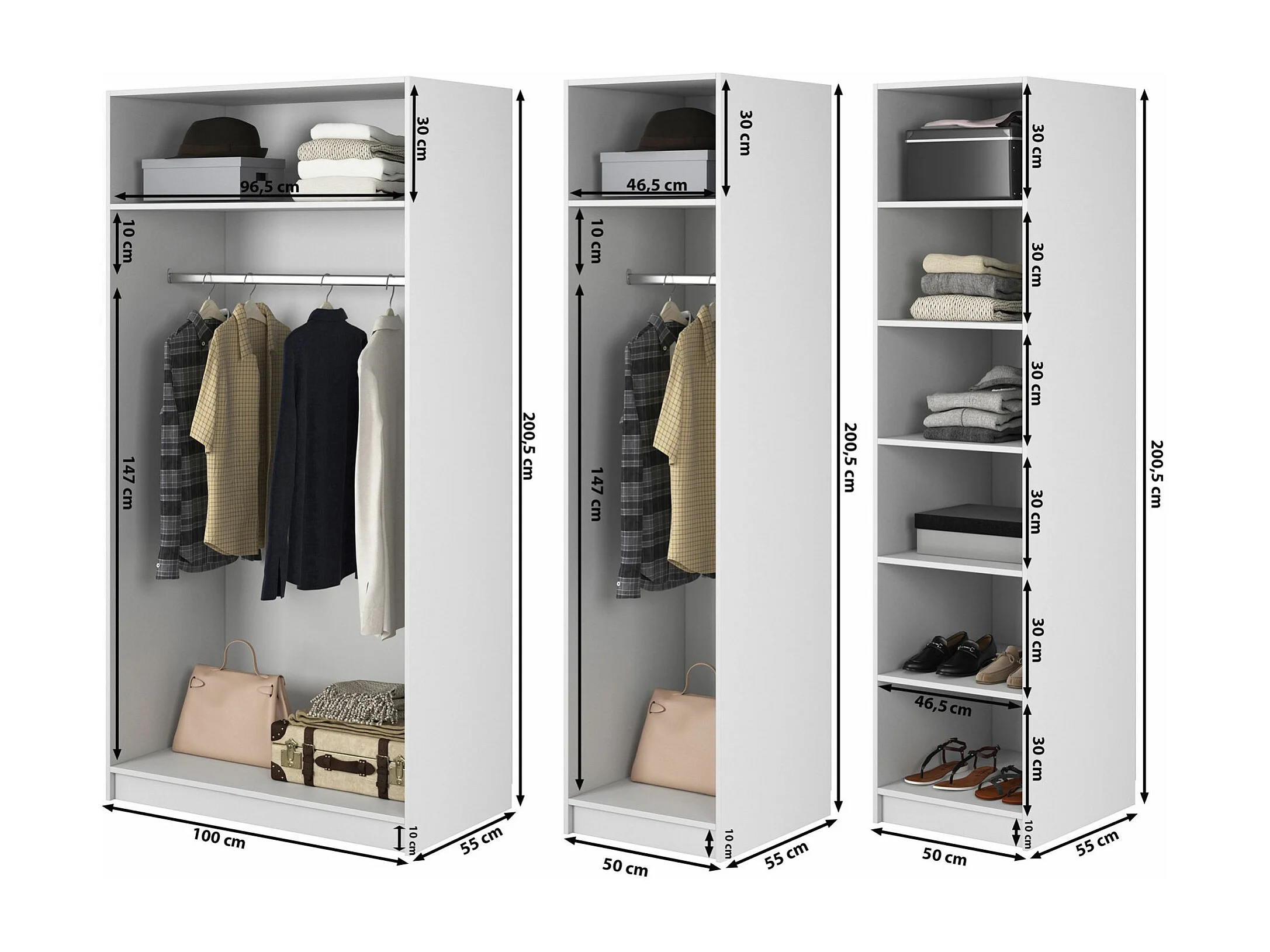 Armoire 4 portes avec 2 tringles et étagères - 200 cm - grège - FRAME