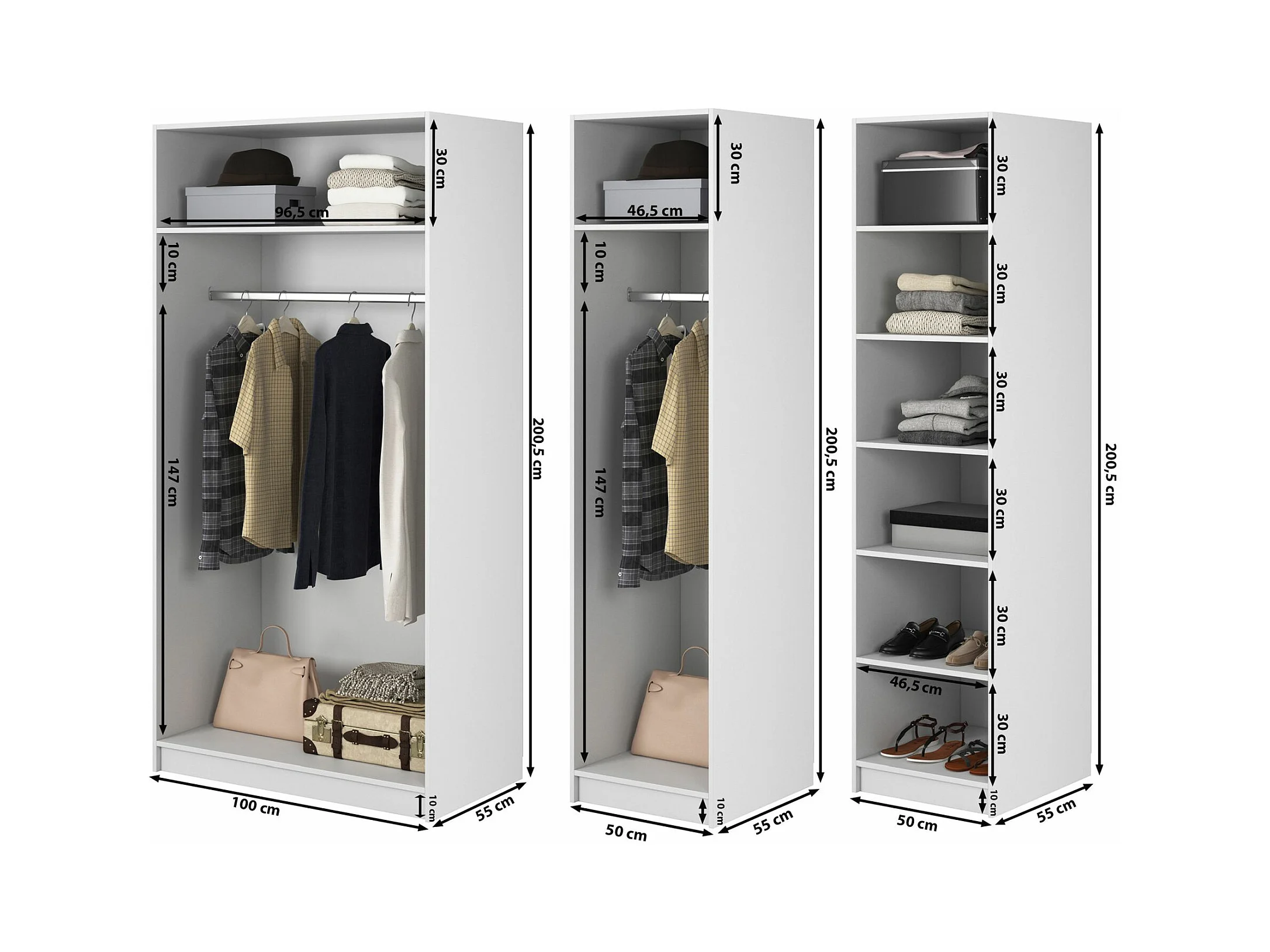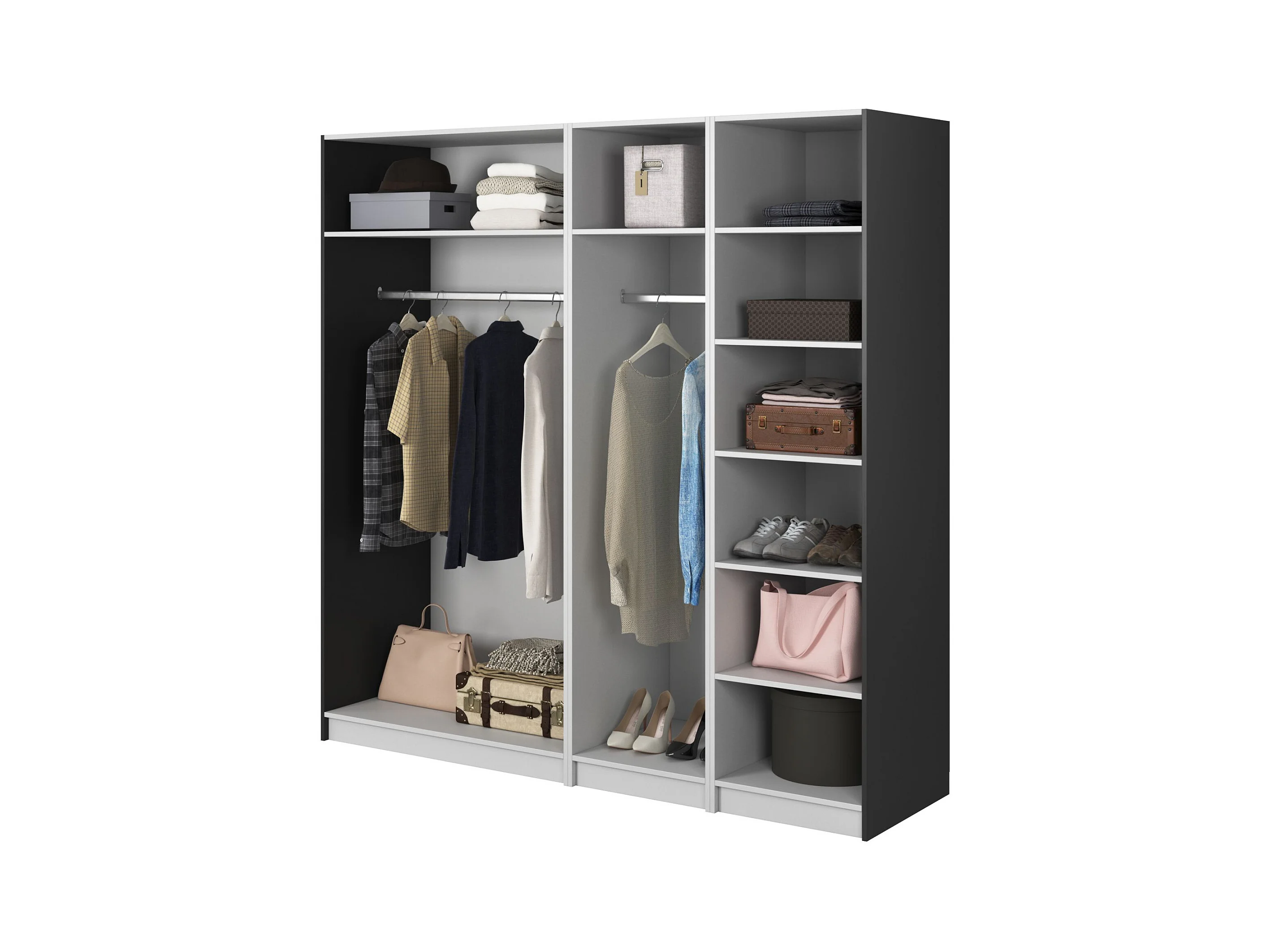 Armoire 4 portes avec 2 tringles et étagères - 200 cm - noir - FRAME