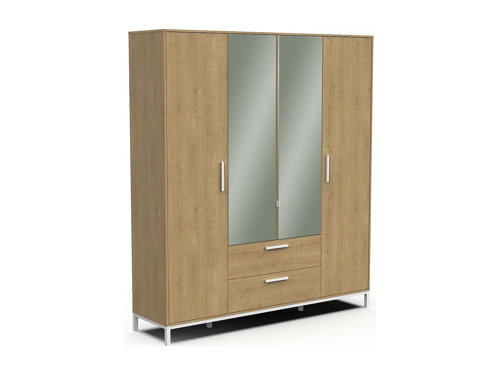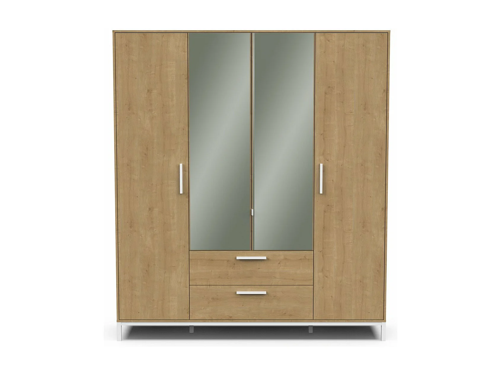 Armoire 4 portes ouvrantes, 2 miroirs et 2 tiroirs décor chêne et blanc mat H220 cm - CRAFT