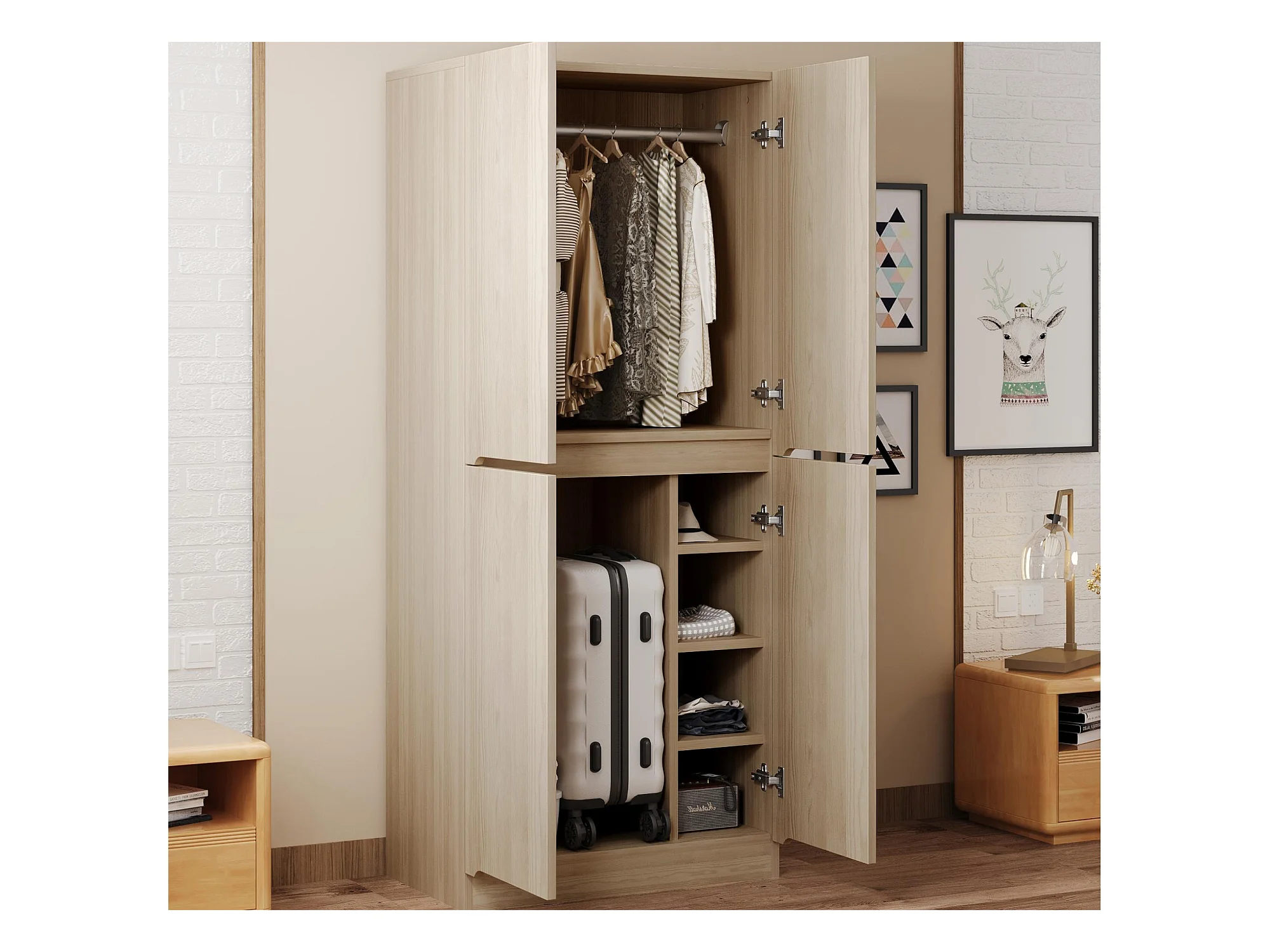 Armoire 70x40x170 cm - avec 4 portes - avec compartiments de rangement - Naturel