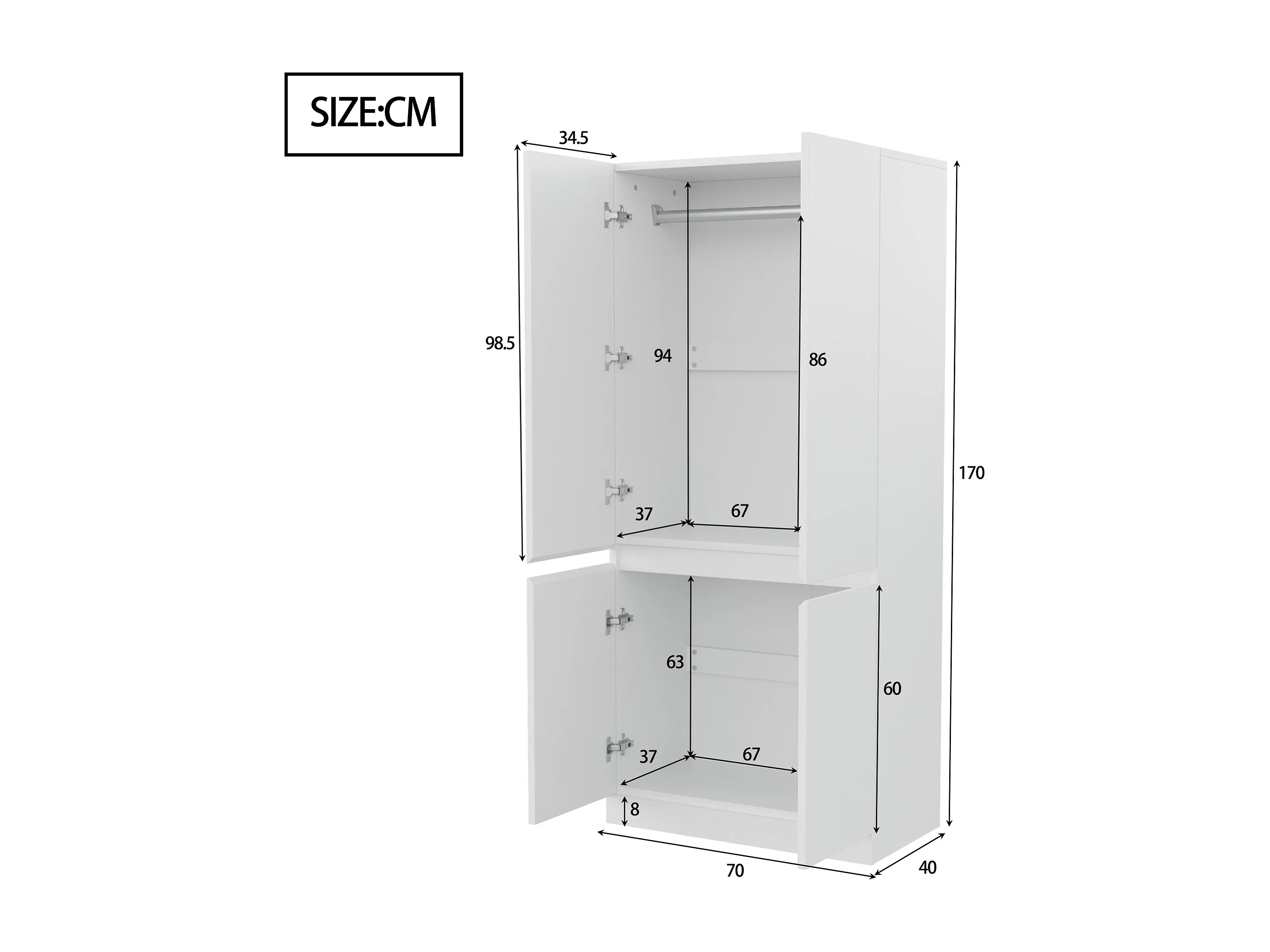 Armoire à 2 portes avec compartiment de rangement - 70 x 40 x 170 cm - bois - blanc