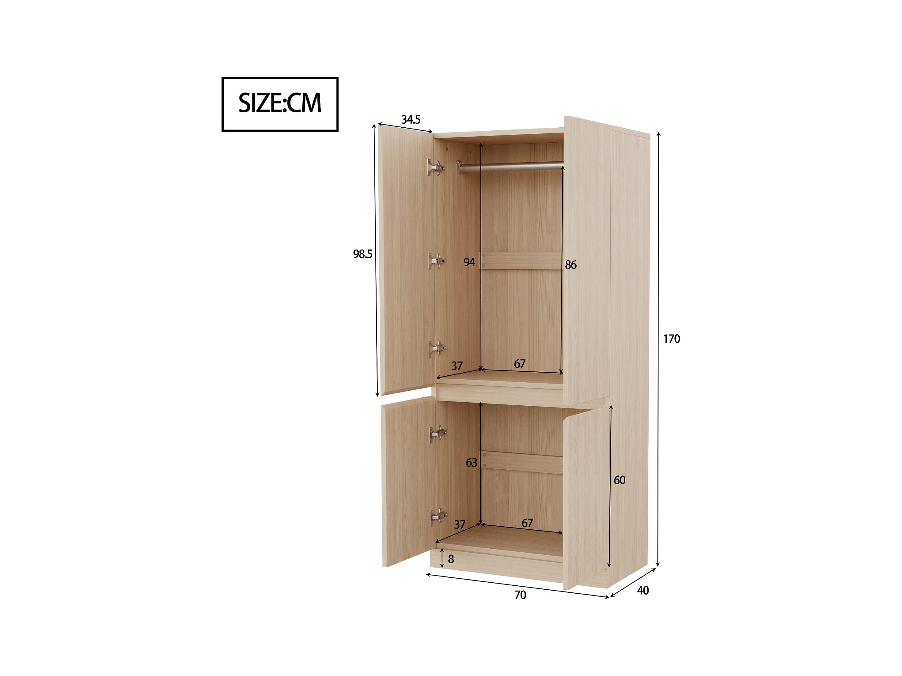 Armoire à 2 portes avec compartiment de rangement - 70 x 40 x 170 cm - bois - naturel
